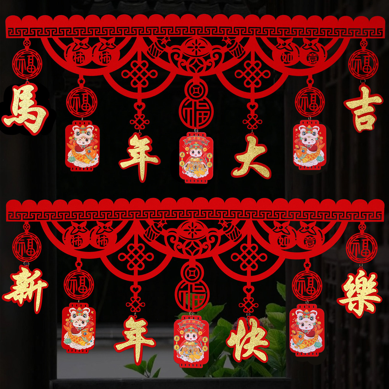 📚 2026马年门楣门头联无纺布过年横批门帘拉花新年门贴装饰商场酒店