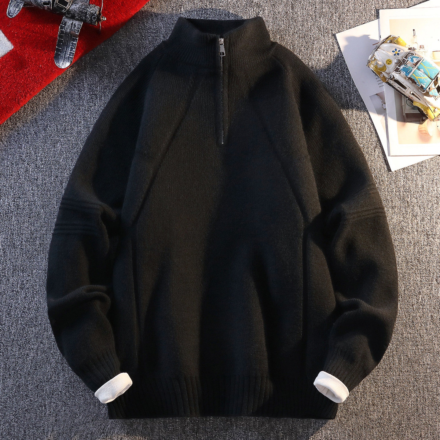 🔥特别推荐它的红色半高领设计,简约而不失时尚感,拉链设计更是增添了一抹青春活力。无论是拉链的质感还是针织的柔软度,都让人感觉十分舒适。