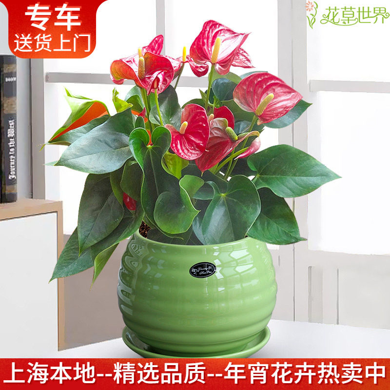 📚 红掌盆栽花烛火鹤花四季常开观花植物多年生室内花卉盆景