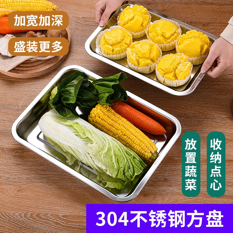 📚 304不锈钢方盘长方形加厚托盘蒸饭盘烧烤盘凉菜熟食餐盘端菜盘子