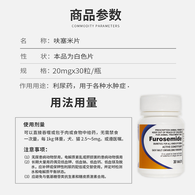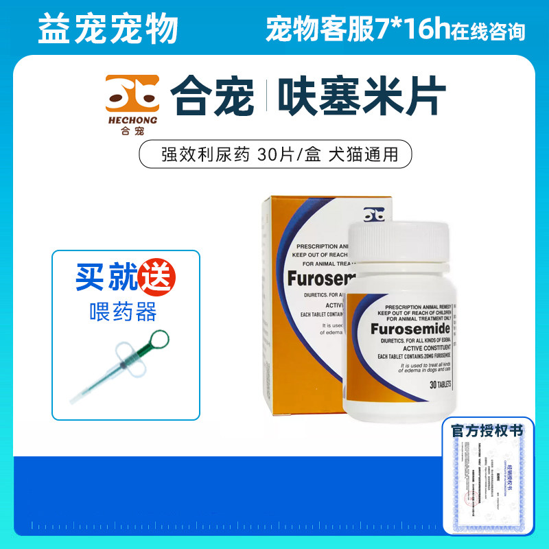 📚 合宠呋塞米片速尿片利尿通猫咪狗狗肺水肿肝腹水胸腔积液20mg30粒