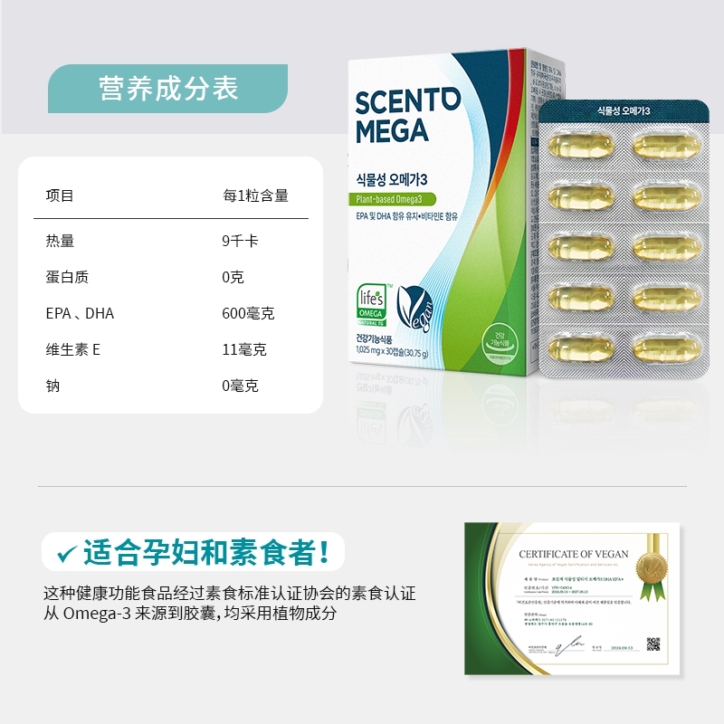 📚 ScentoMega 植物性DHA深海藻油omega 600mg 孕妇/素食者适用 30粒