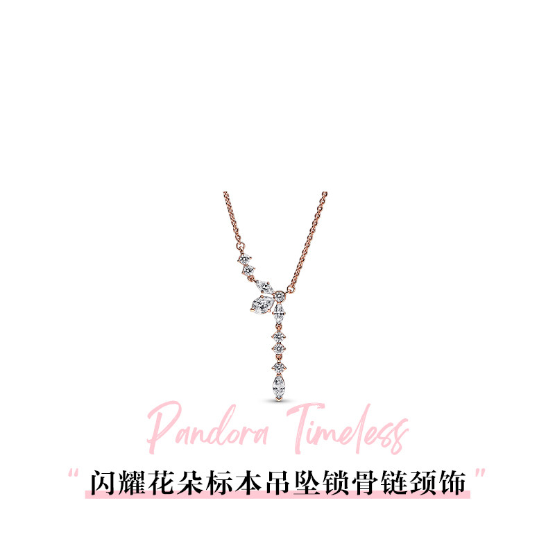 📚 Pandora潘多拉奥莱闪耀花朵标本吊坠锁骨链项链颈饰