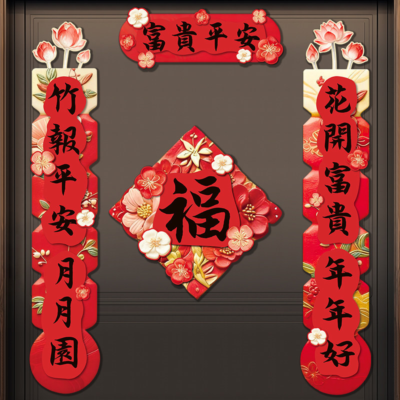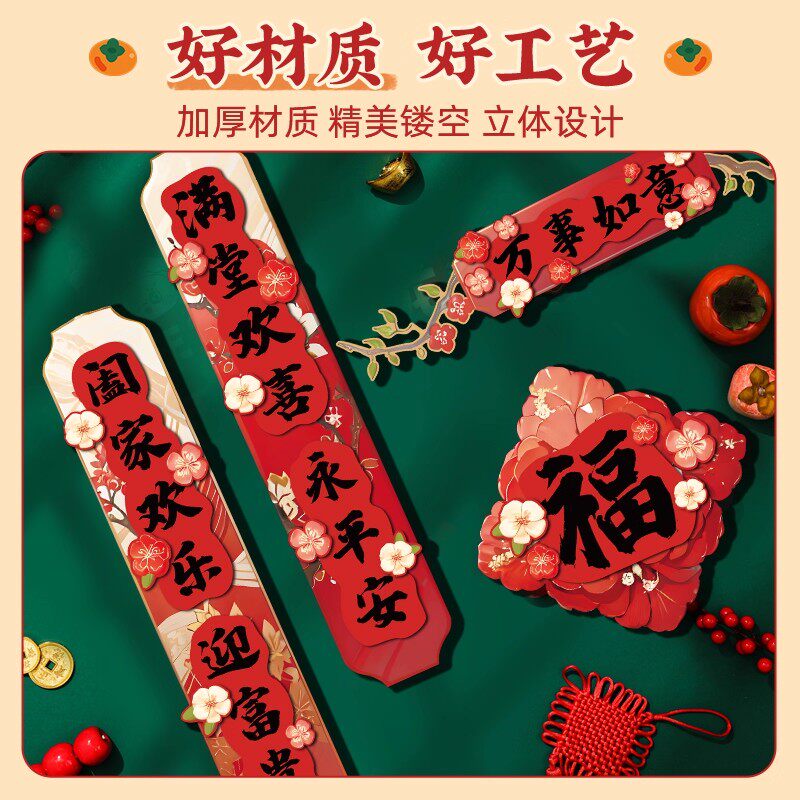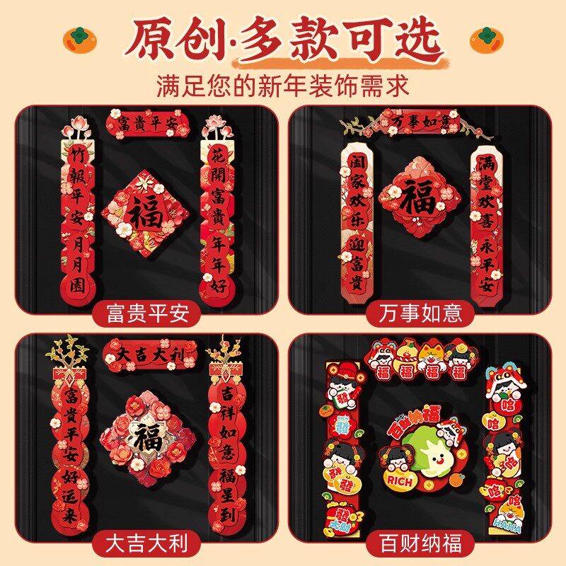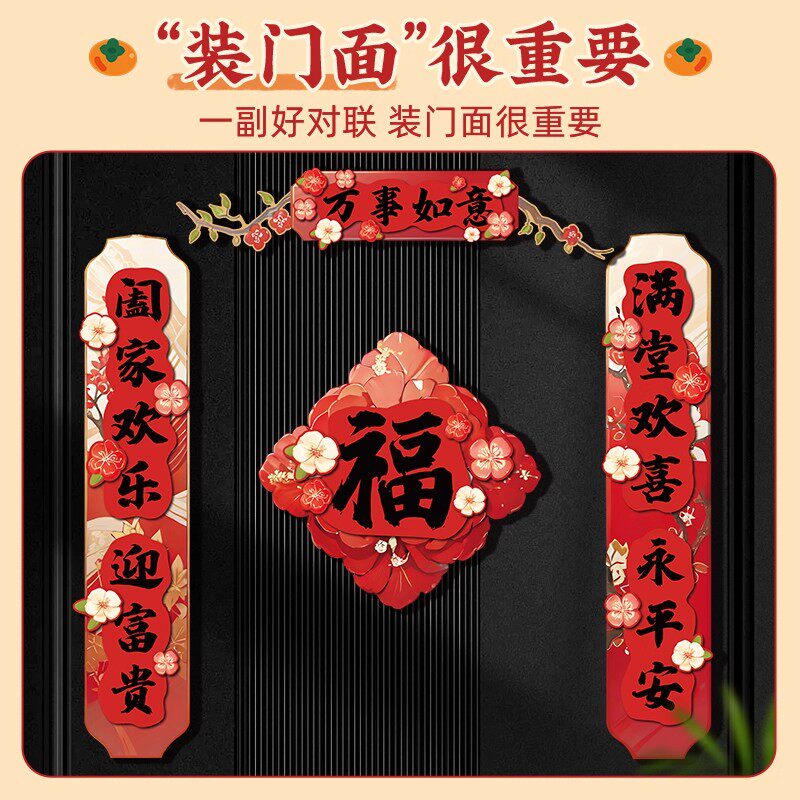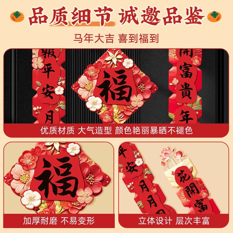 📚 立体对联马年新款磁吸中式春联2026春节福字贺年挥春大门贴黑字红