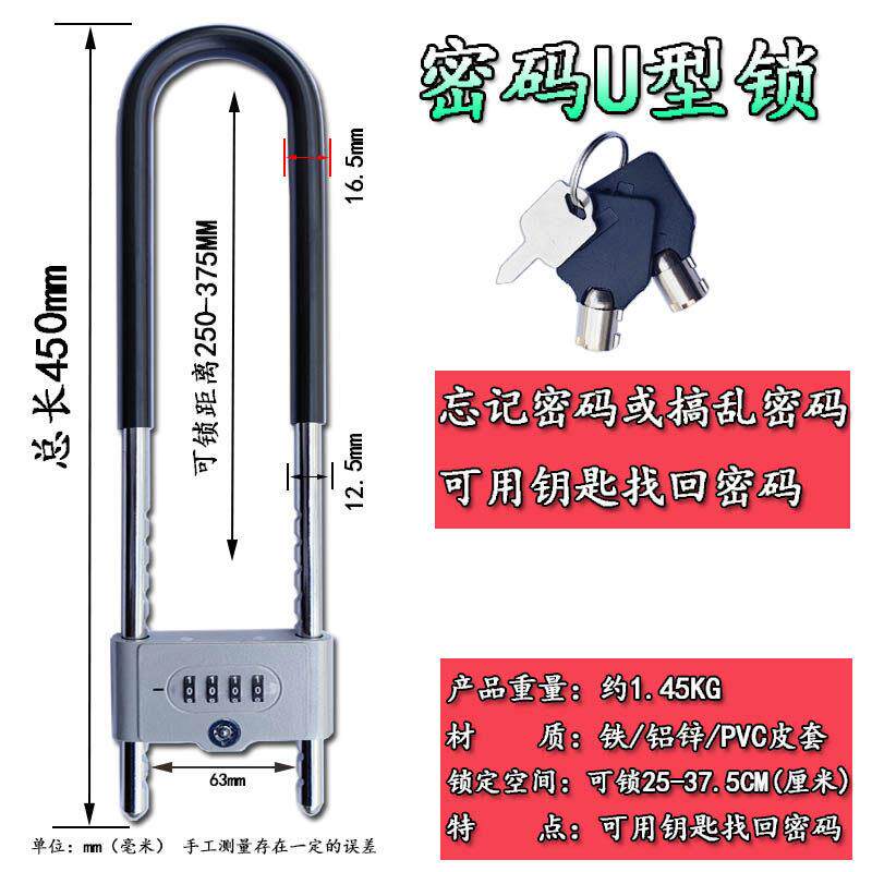 📚 密码锁玻璃门锁挂锁防盗U型锁门锁u形锁锁具商铺家用加长密码锁