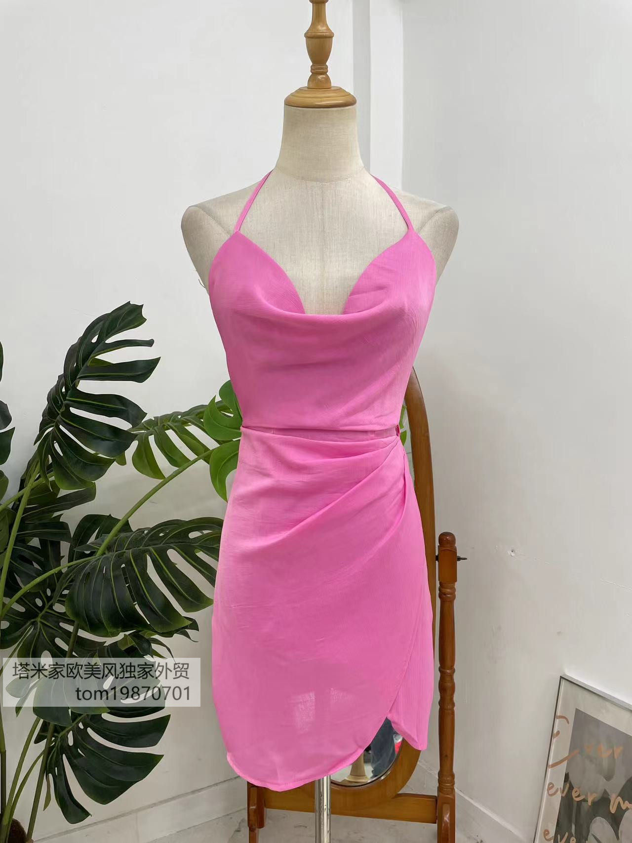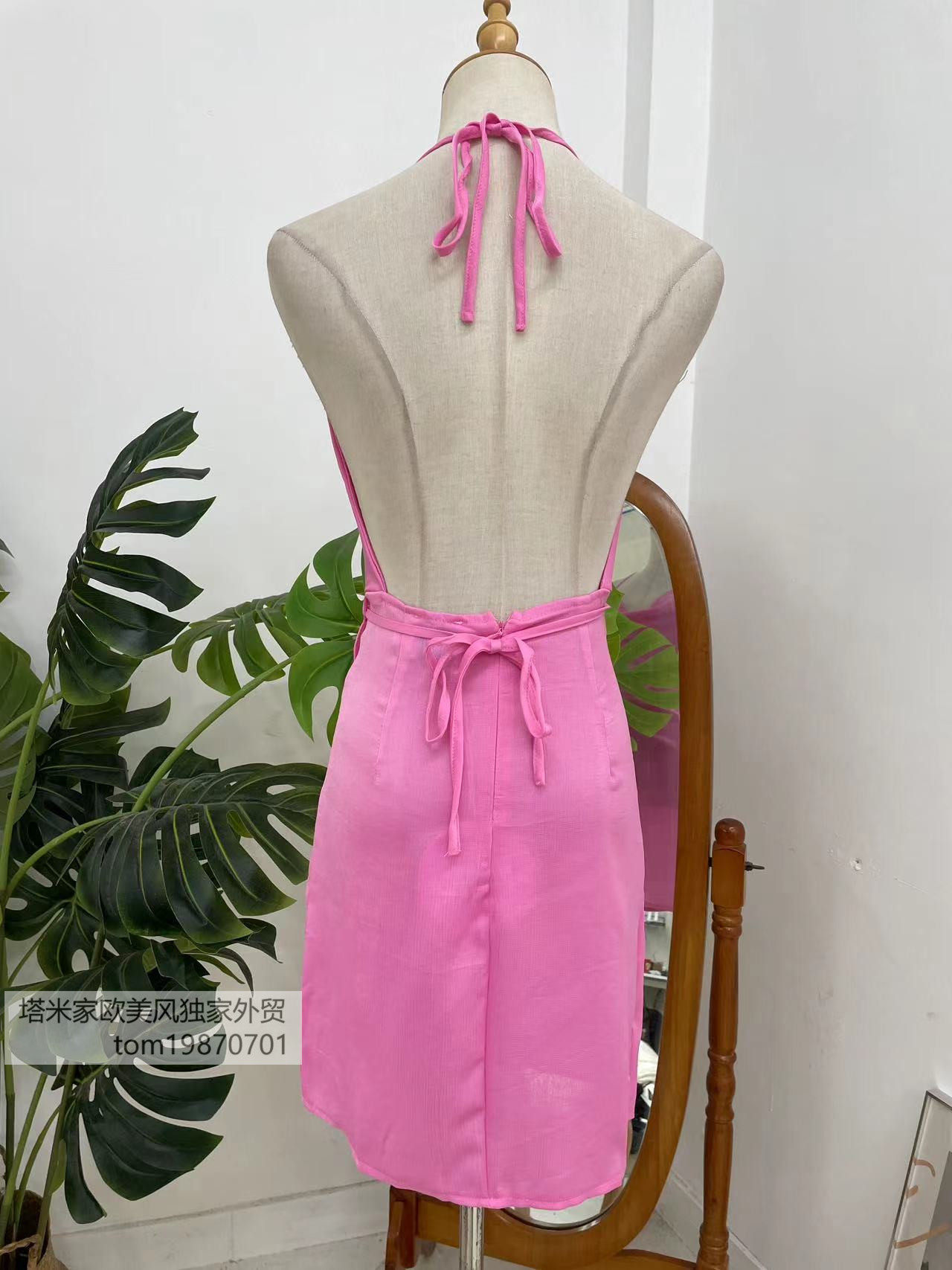 📚 塔米家 澳单P*Polly荡领大露背挂脖粉色连衣裙B3-5