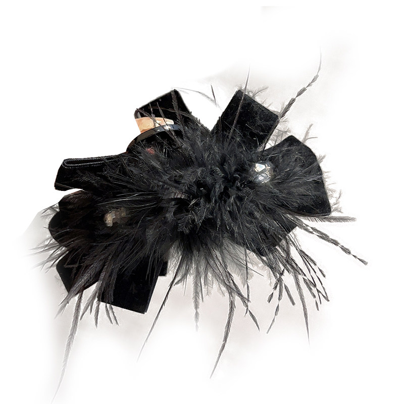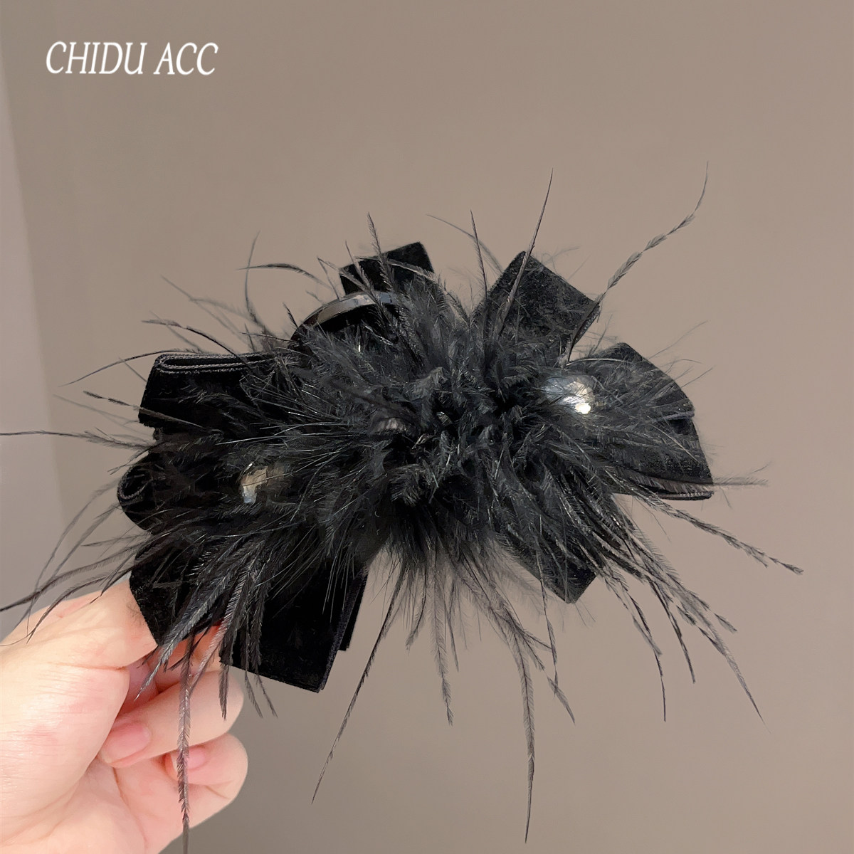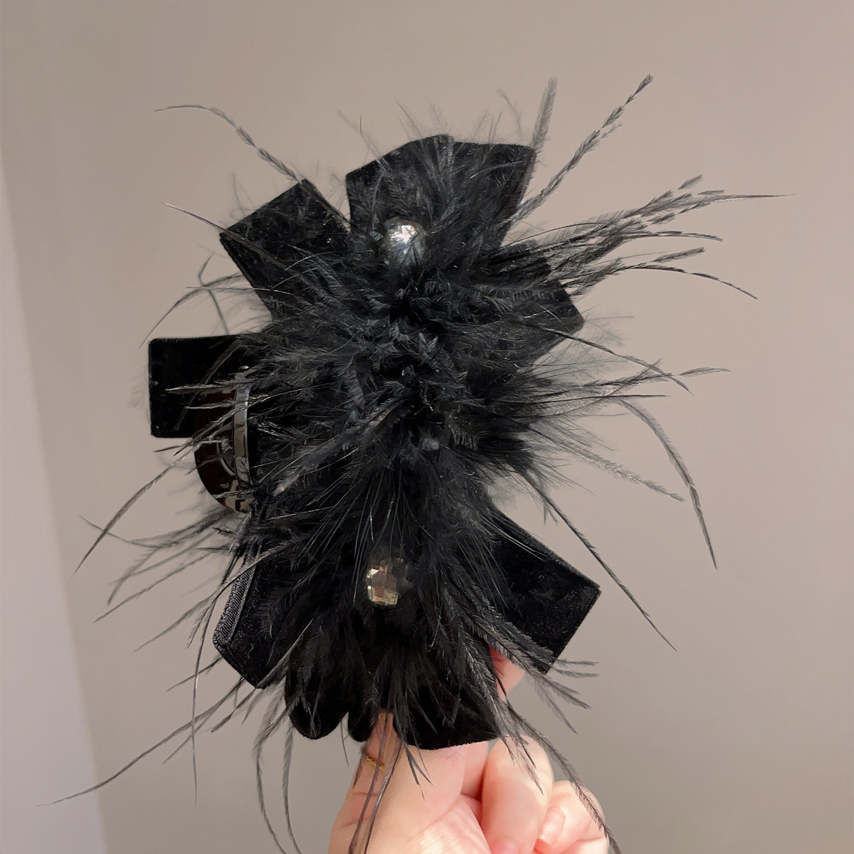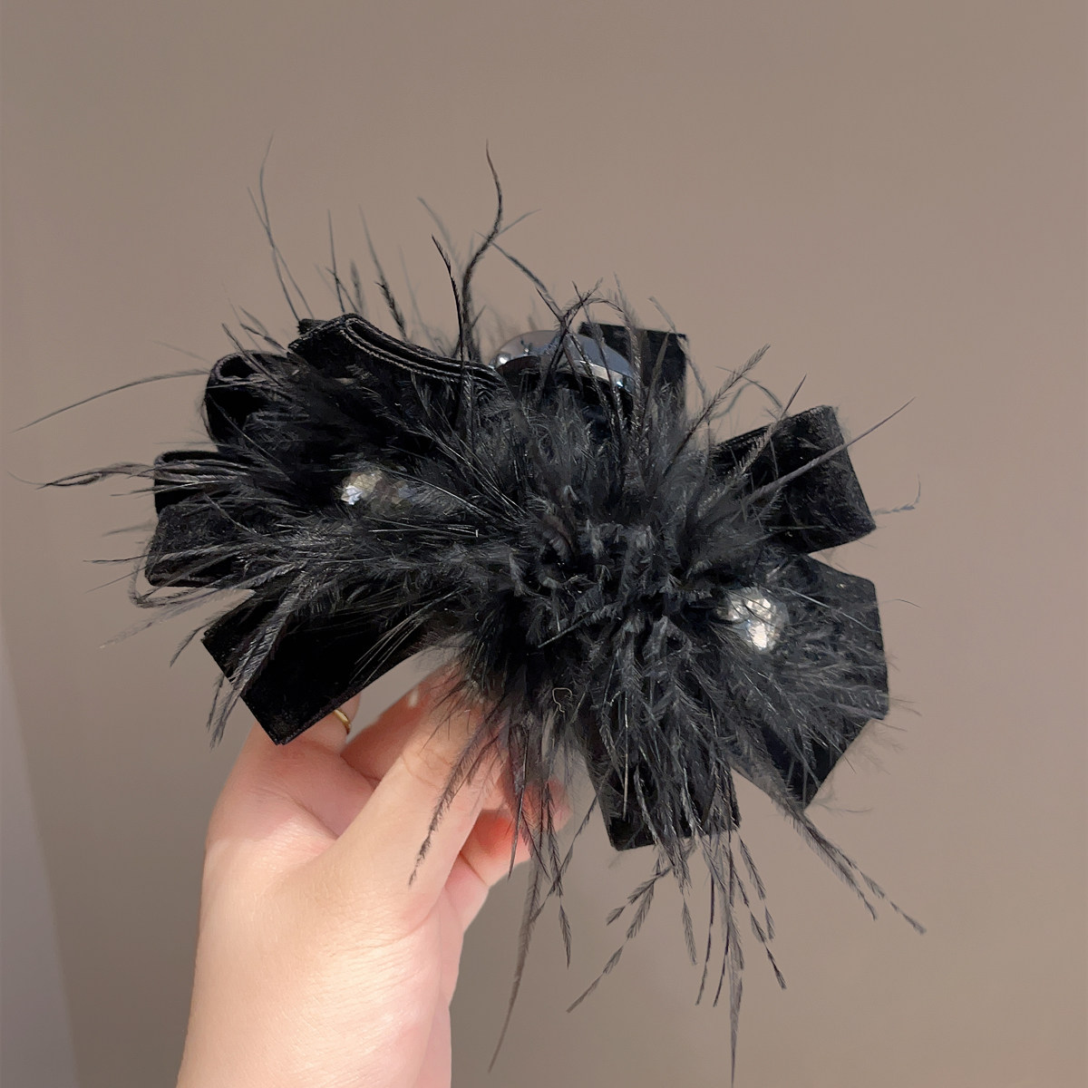 📚 黑色羽毛抓夹蝴蝶结头饰日韩发夹女后脑勺大号鲨鱼夹高级感头发抓