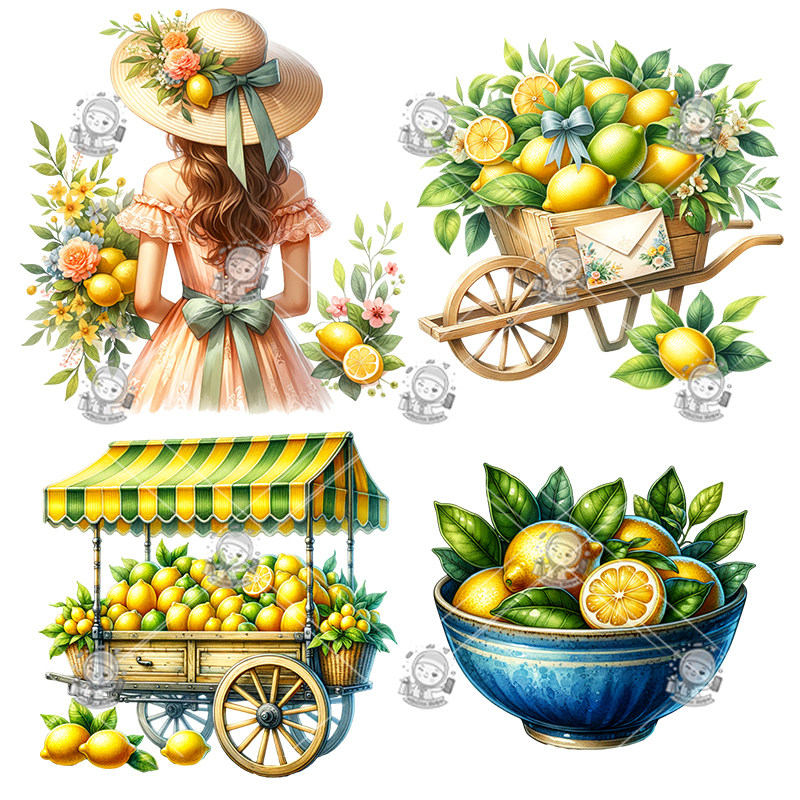 📚 水彩柠檬素材包剪贴画手绘水彩装饰插图PNG免抠设计素材高清新品