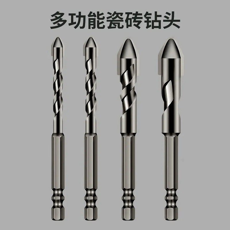 📚 超强四刃金刚钻瓷砖打孔钻头六角柄十字手电钻混凝土磁砖玻璃钻孔