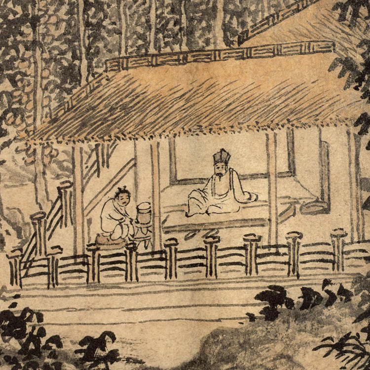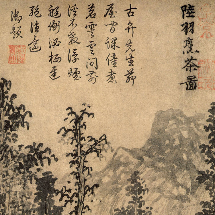 📚 元赵原陆羽烹茶图仿古画名画真迹复制品古代中式卷轴玄关山水画