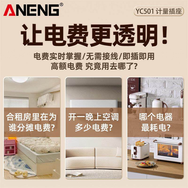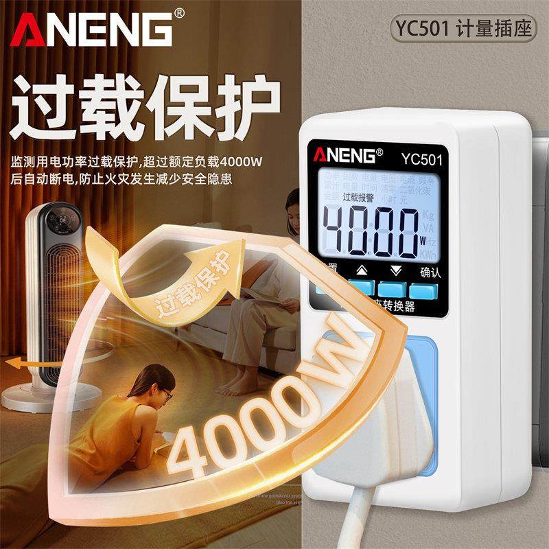 📚 多功能电力检测仪电表家用电费功率计数显插座电量显示器功耗表