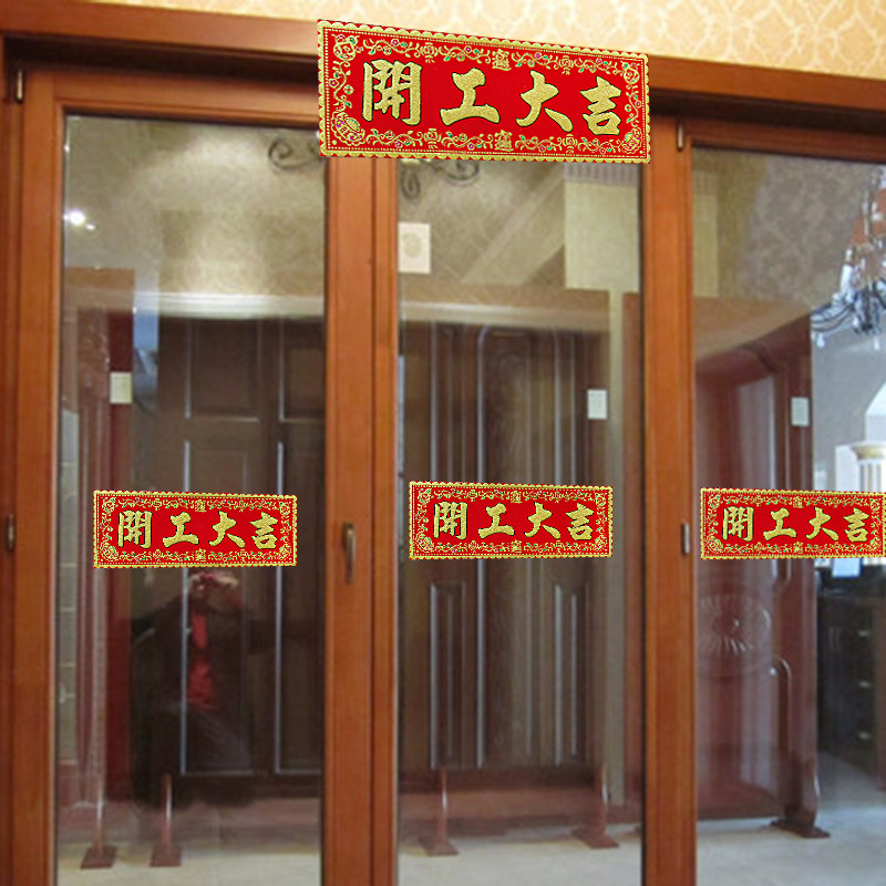 📚 开工横幅上班兴工动工开工大吉门贴装修贴丝绒对联红纸房大门挥春