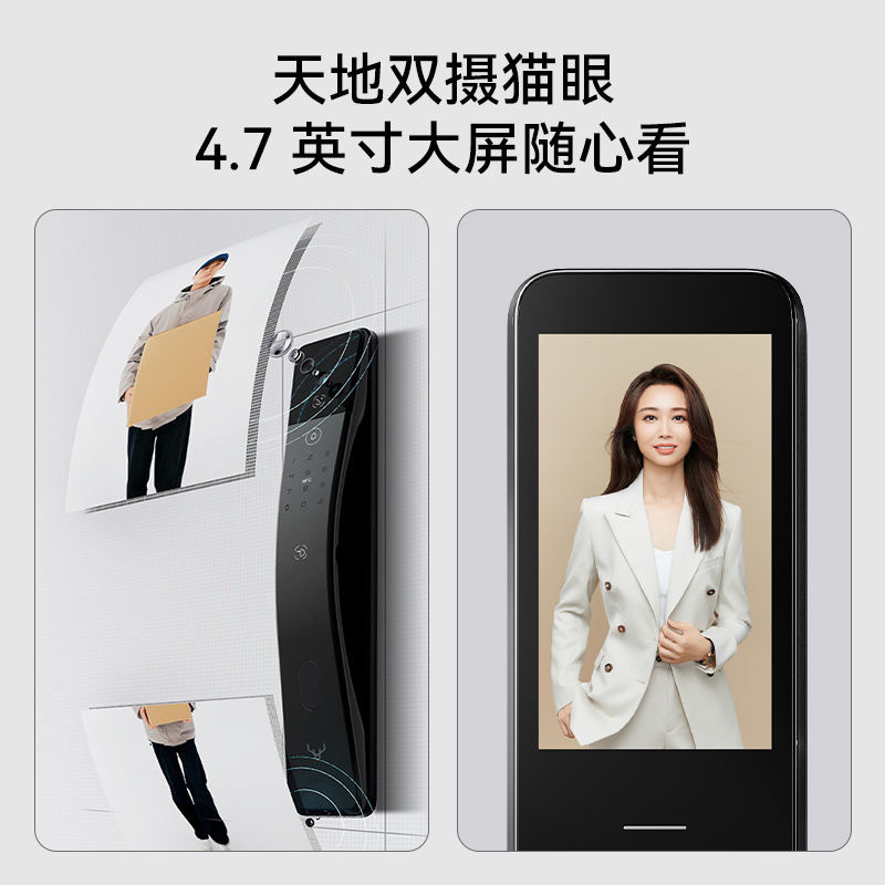 📚 鹿客智能锁S6MAX面容识别智能门锁指静脉天地双摄室内大屏猫眼