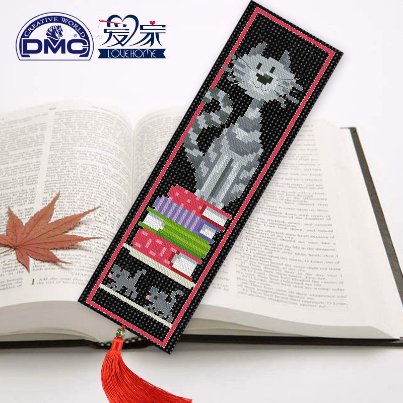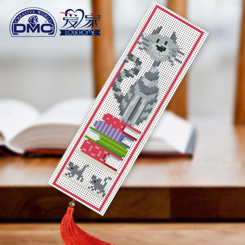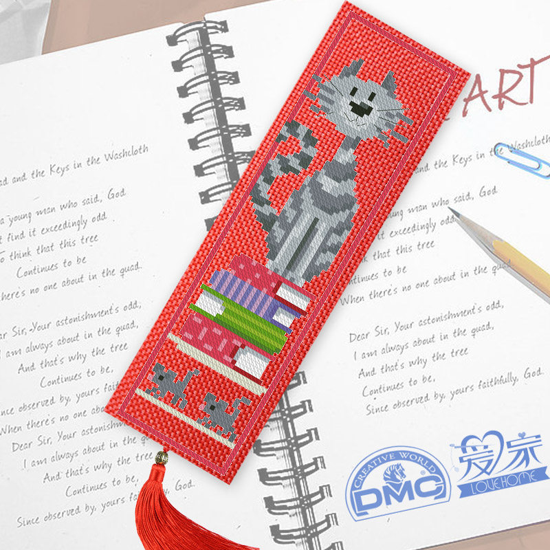 📚 法国DMC十字绣书签 儿童学生手工作业教师节礼物爱看书的猫咪二