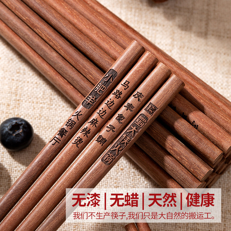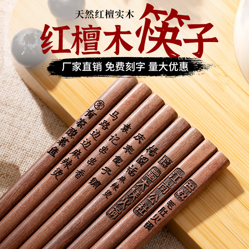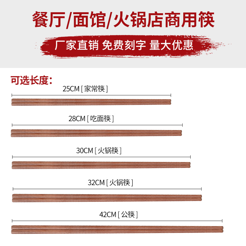 📚 红檀木筷子商用餐饮火锅筷子加长筷饭店面馆专用筷刻字定制100双