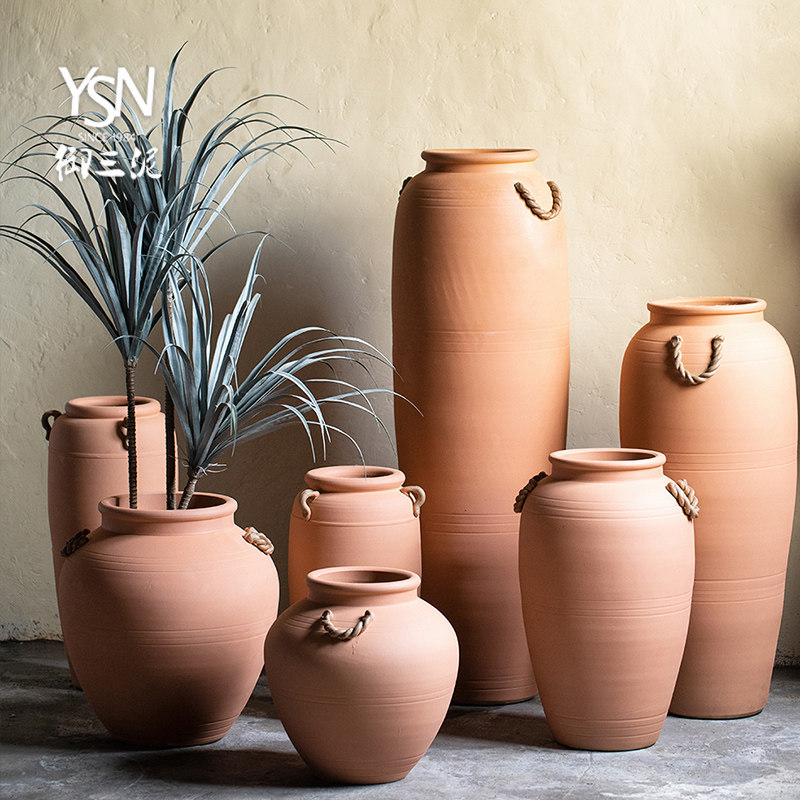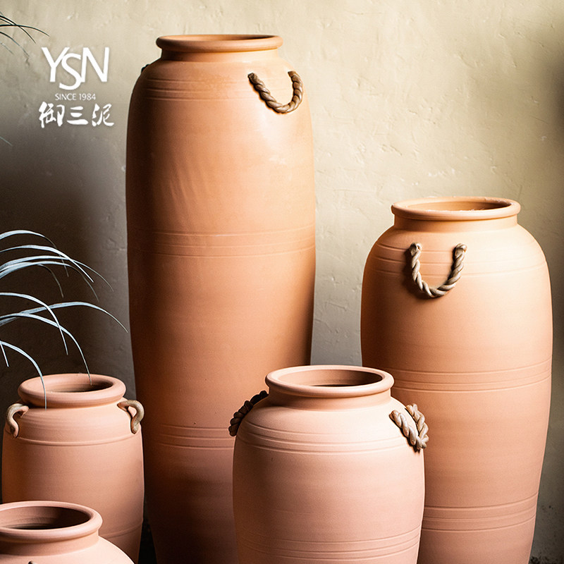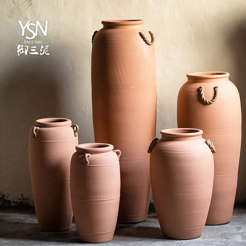 📚 景德镇粗陶带耳陶瓷花瓶客厅插花摆件陶罐缸陶缸落地大号花盆