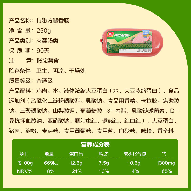 📚 双汇特嫩方腿香肠火腿肠肉类即食早餐三明治切片火锅下厨搭档