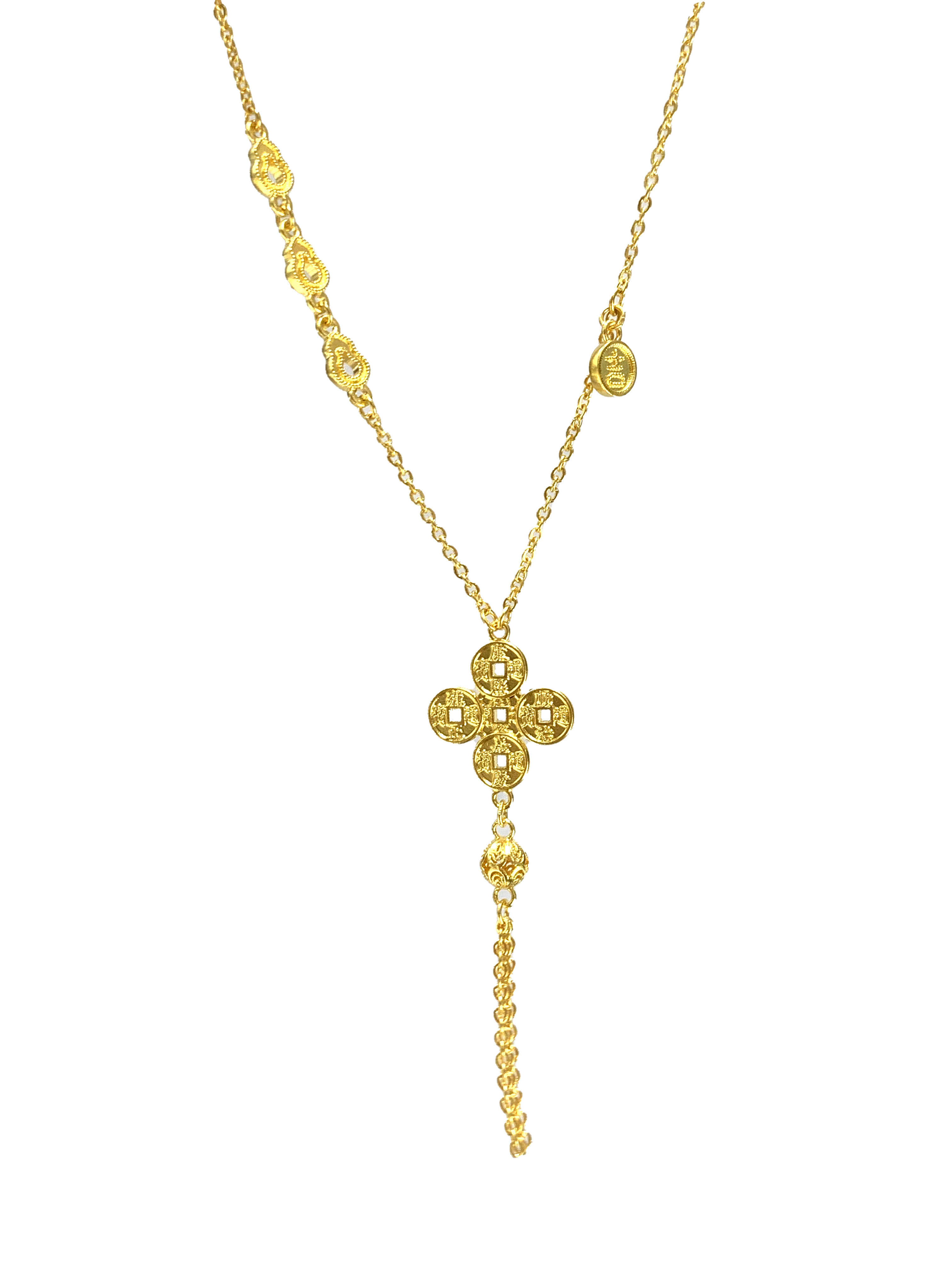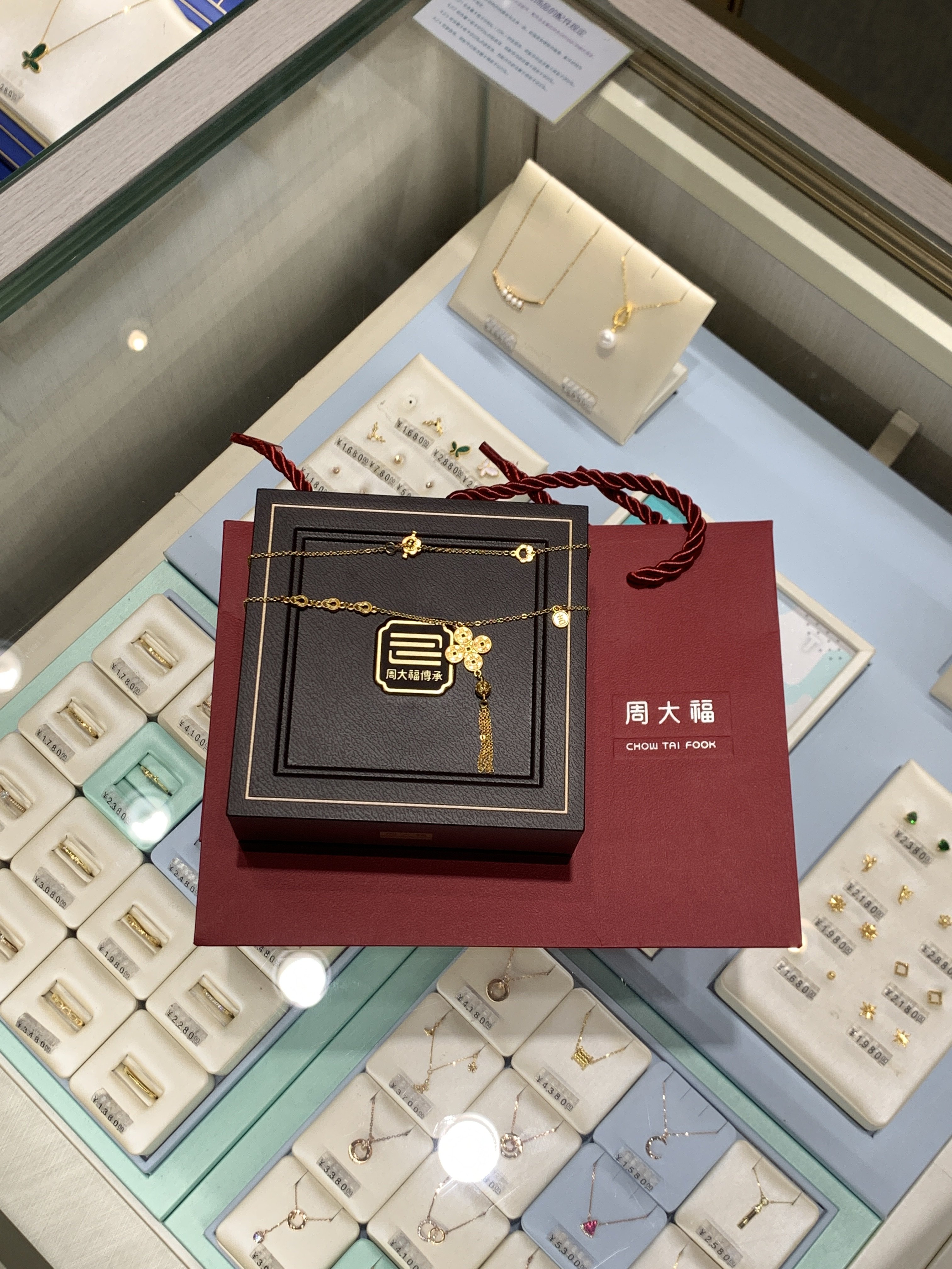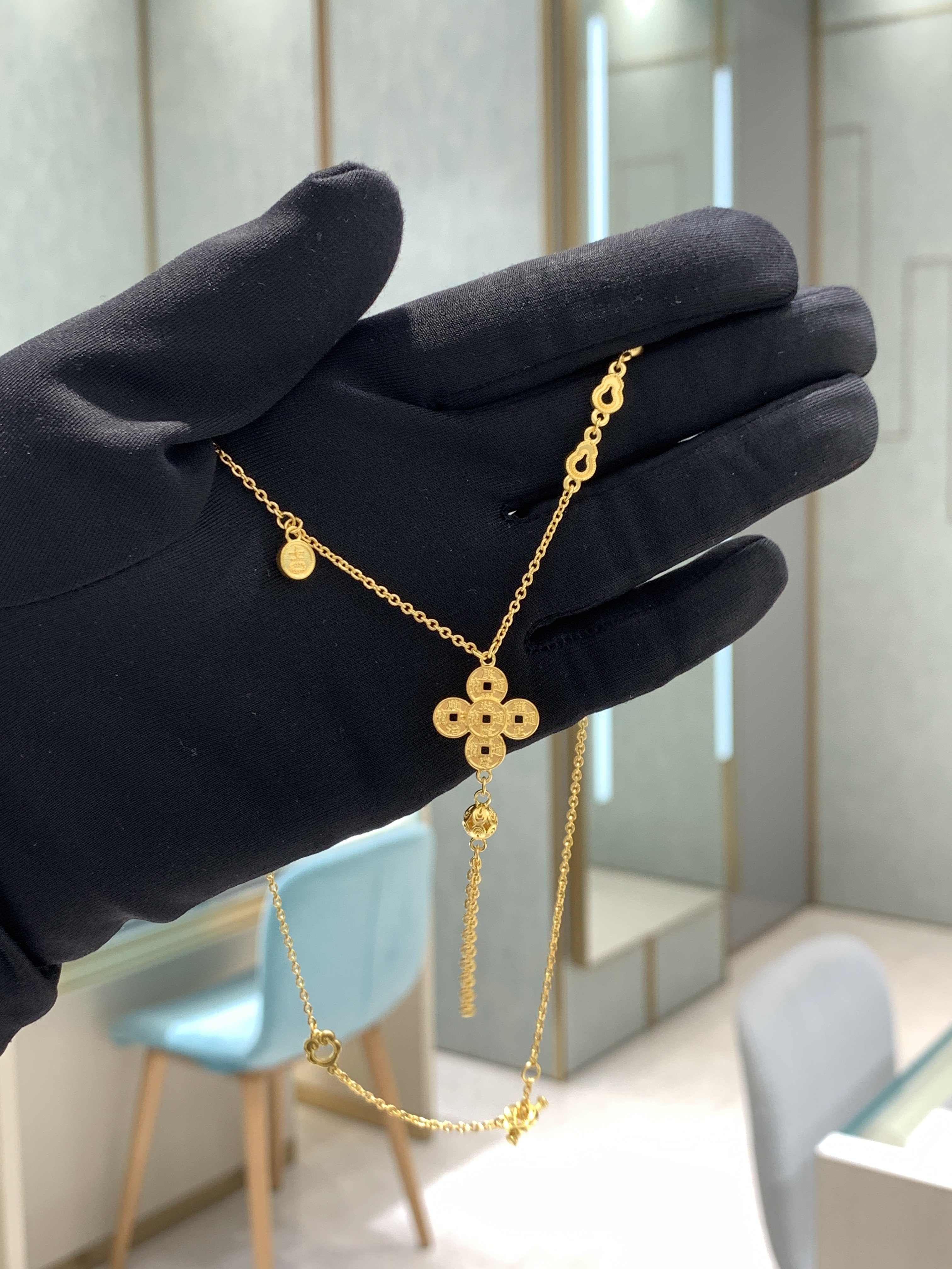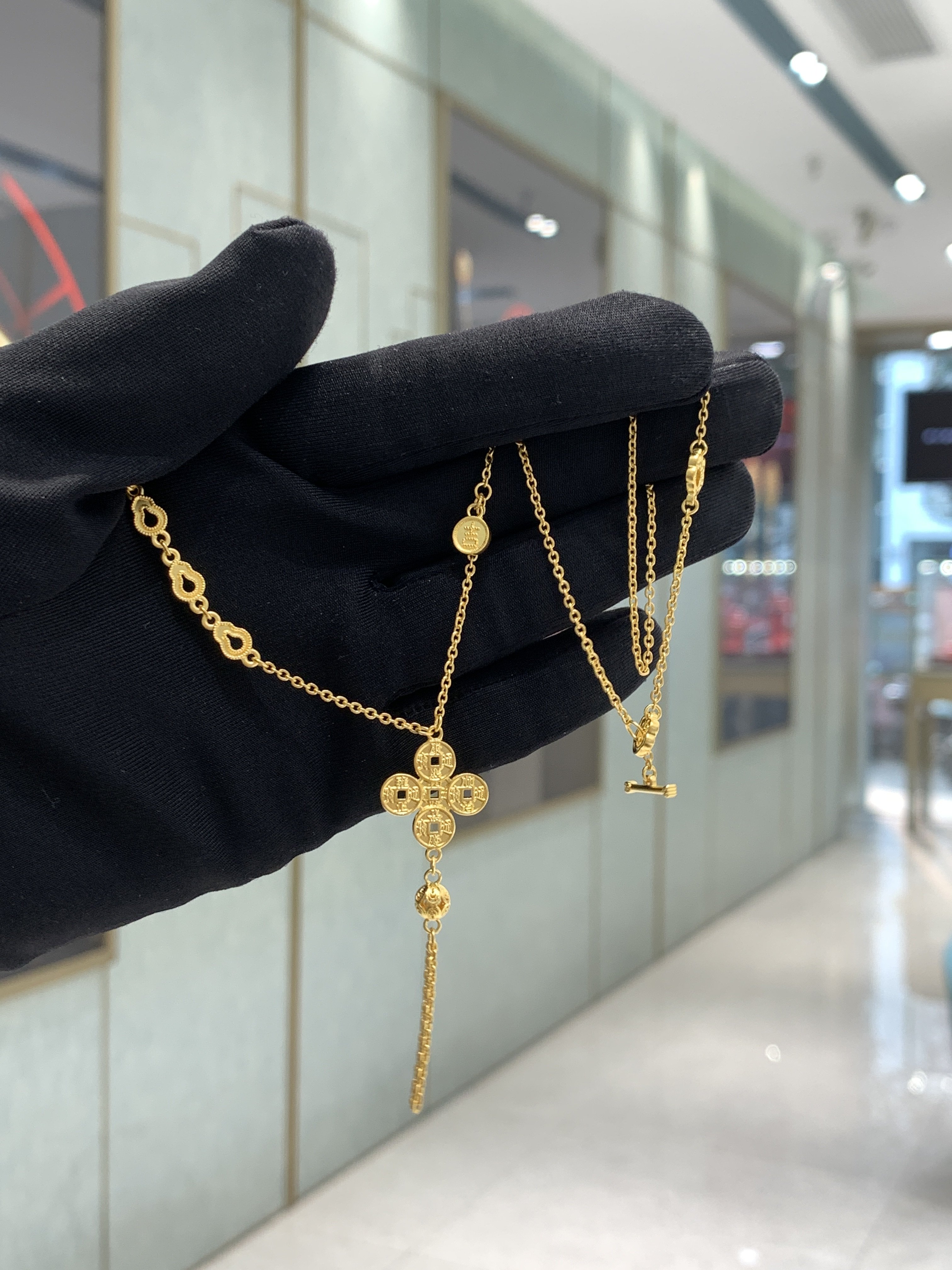 📚 周大福代购 传承系列五帝钱四叶草黄金项链女正品克减计价F235922