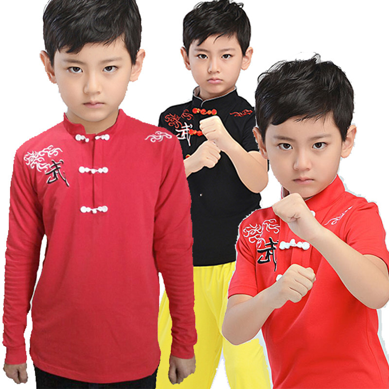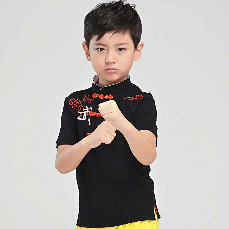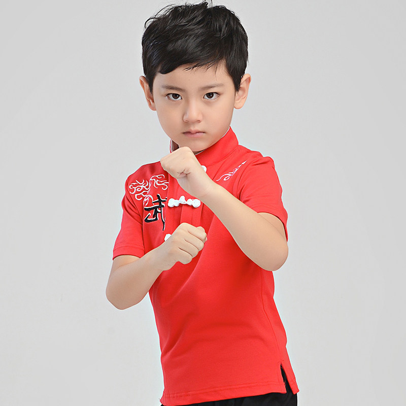 📚 训练表演两用!莱卡棉中式儿童武术T恤 立领中国风短袖武术练功服