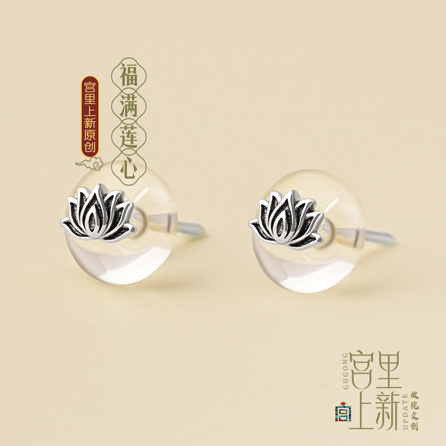 📚 宫里上新水晶耳钉女天然冬季耳饰纯银莲花宝石耳环送妈妈生日礼物