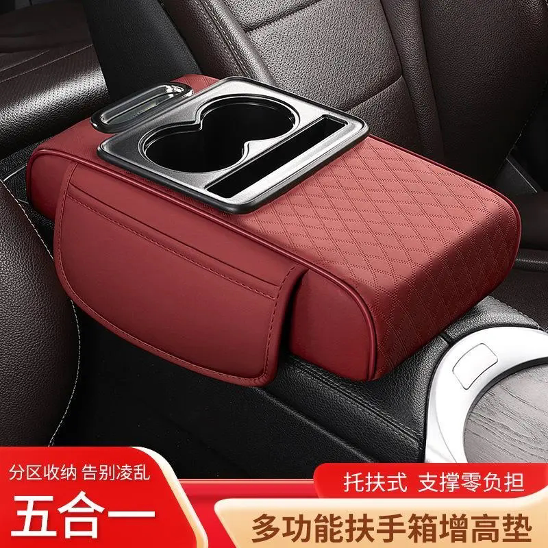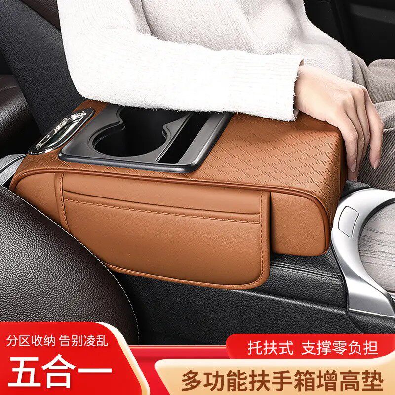 📚 肘托垫多功能水杯架车载纸巾盒高级扶手箱垫中央手扶增高垫四合一