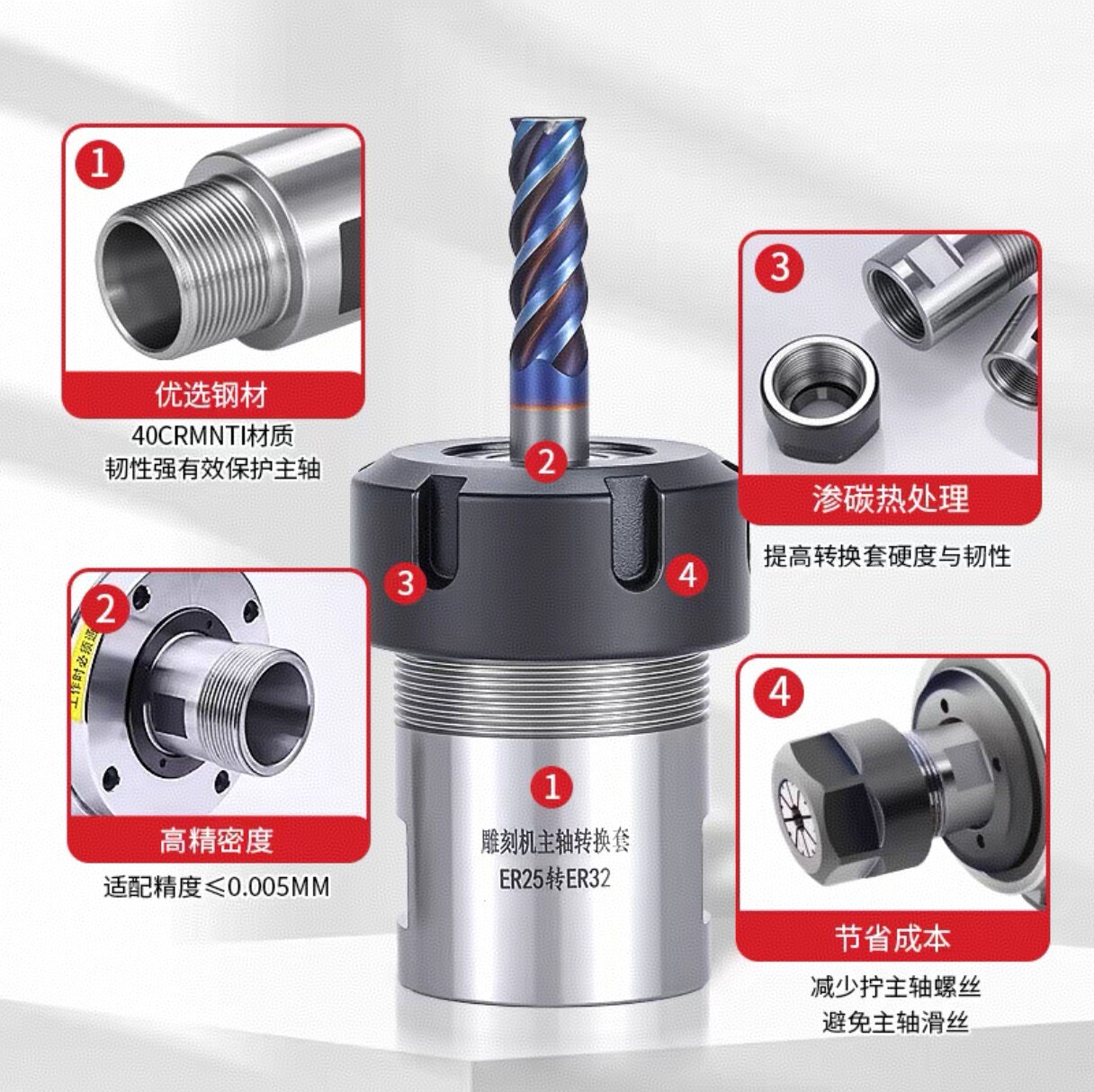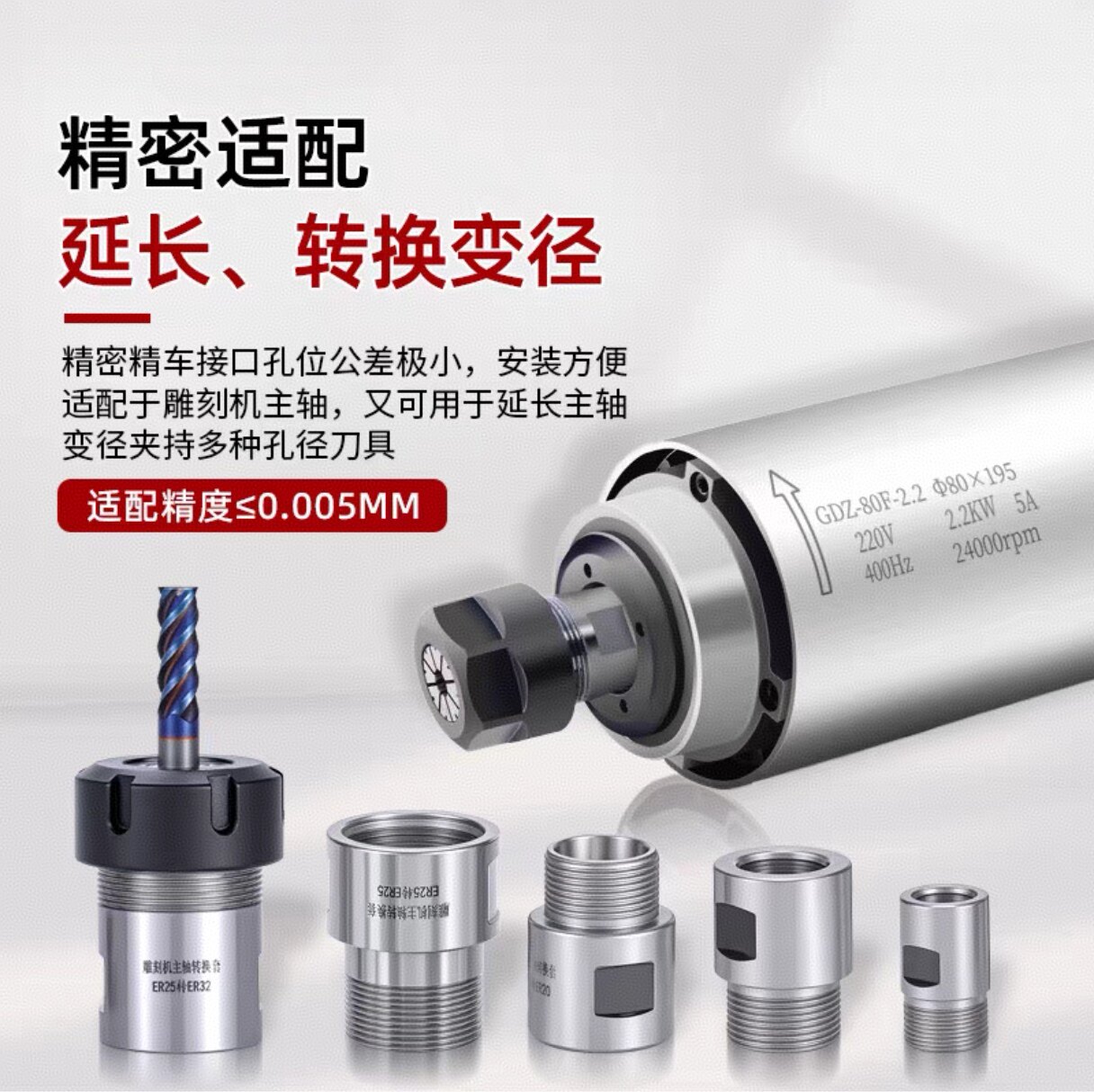 📚 雕刻机主轴电机转换套延长杆ER11-ER32夹头螺母加长转换接头筒夹