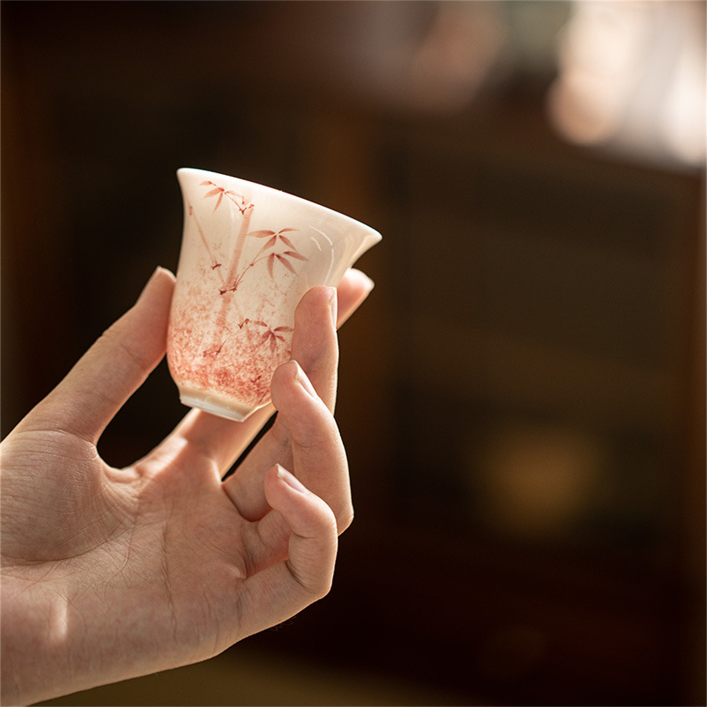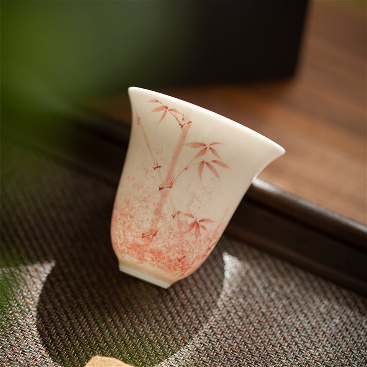 📚 尚品阁丨墨染红竹茶杯主人杯功夫茶具高款陶瓷聚香杯文人器品茗杯