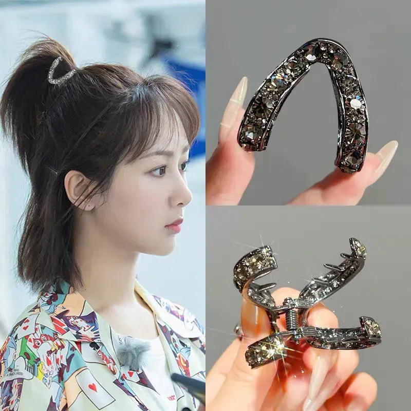 📚 v型抓夹高级感水钻半扎发夹女后脑勺高颅顶头饰高马尾丸子头抓夹