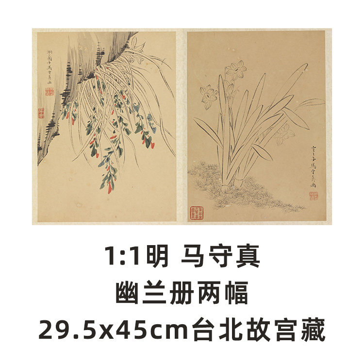 📚 1:1明 马守真 幽兰册两幅29.5x45cm台北故宫藏花鸟名画真迹复制品