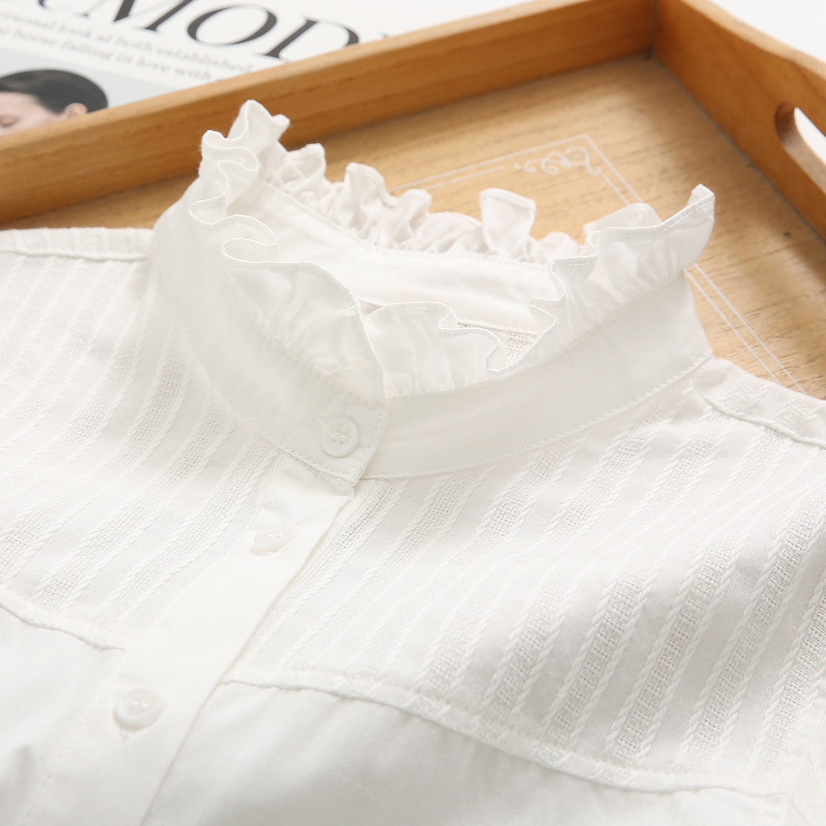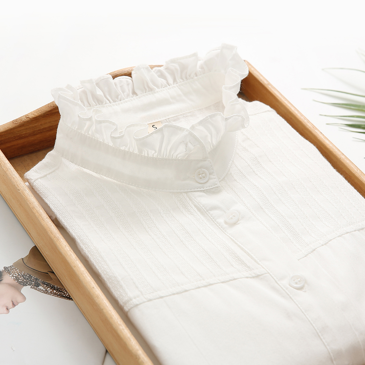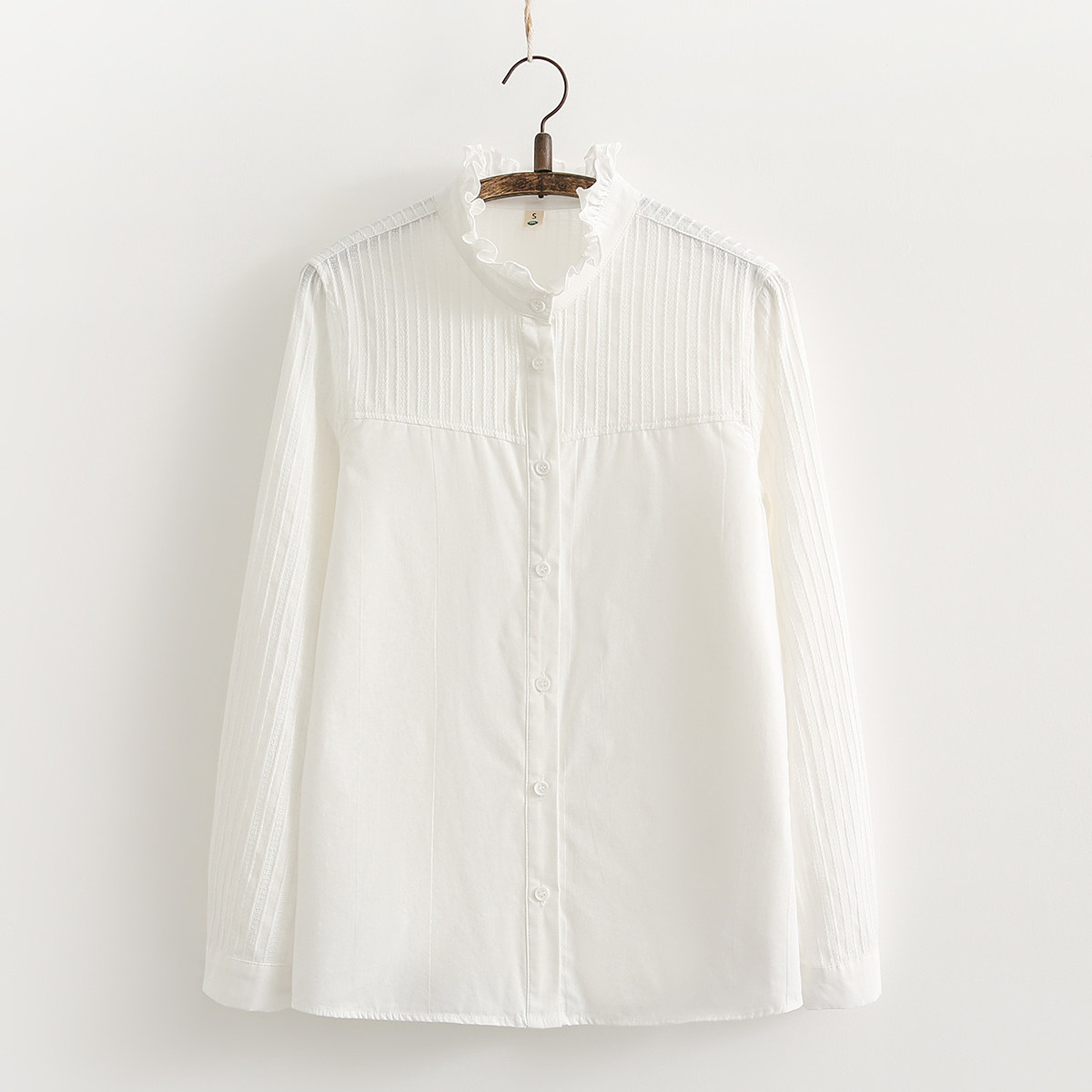 📚 秋季新款立领木耳花边纯棉白衬衫女长袖学生文艺拼接内搭法式衬衣