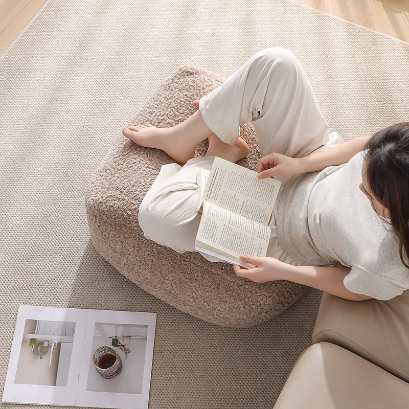 📚 羊羔绒坐墩北欧家用客厅沙发脚踏垫卧室床边凳子坐垫软包凳子坐墩