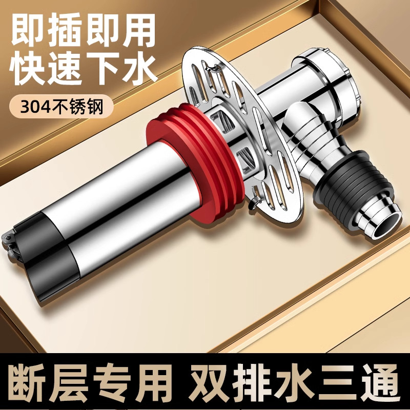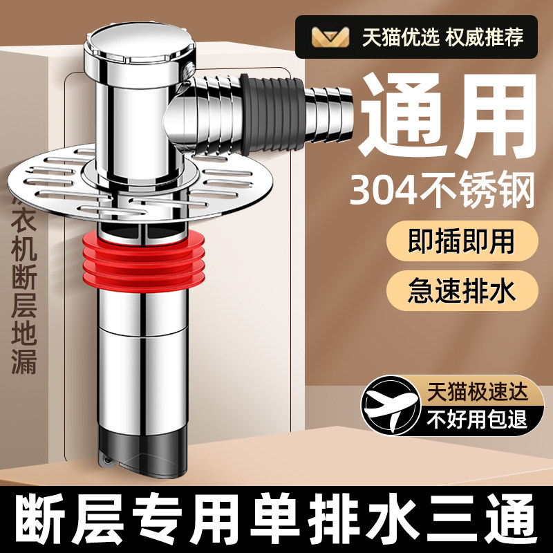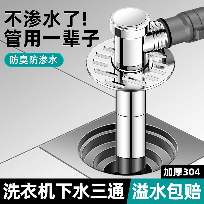 📚 不锈钢断层地漏下水管三头洗衣机通接头排水管防返臭通用延长管