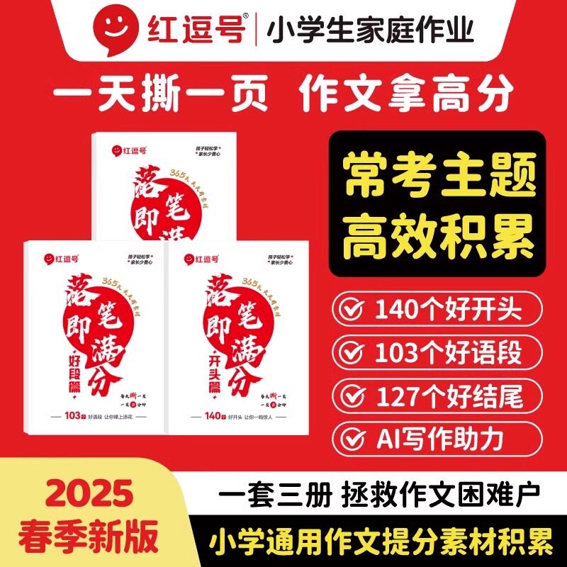 📚 2025新版丨荣恒红逗号落笔即满分 开头篇好段篇结尾篇365天天天有素材 小学生作文提分素材好词好句好段大全