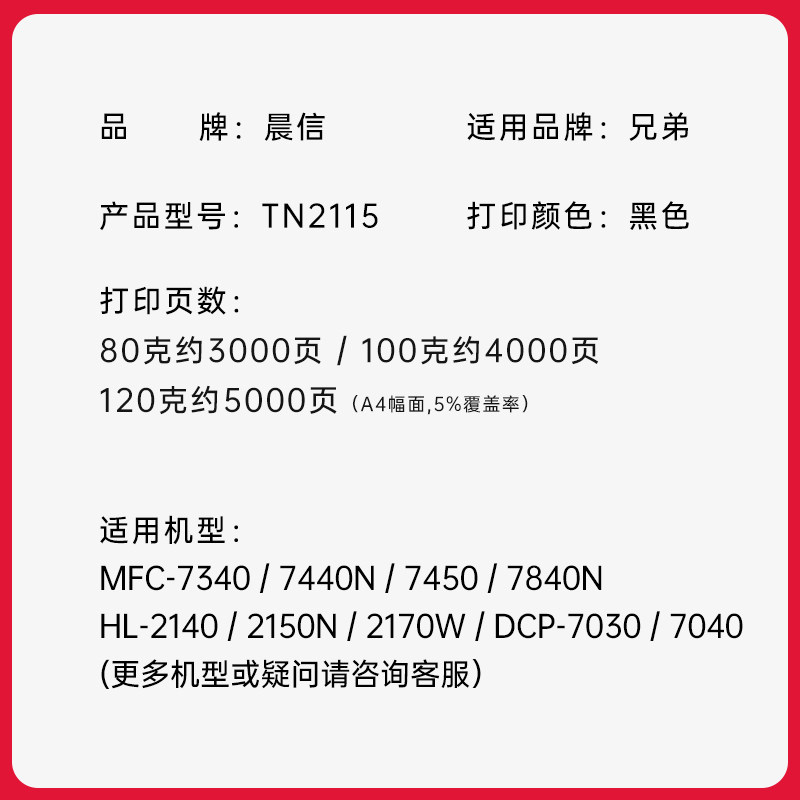 📚 【包邮】适用兄弟MFC7340碳粉 TN2115墨粉 DR2150 HL2140 7450 7040 DCP7030打印机碳粉