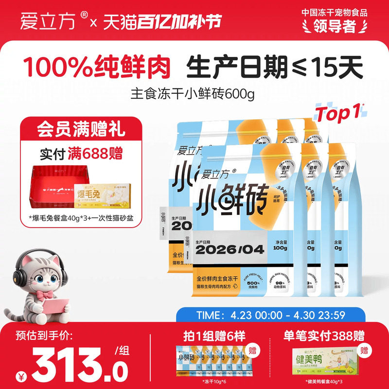 📚 爱立方小鲜砖鲜肉主食冻干鸡肉鸽肉成猫幼猫冻干自有工厂每月送检