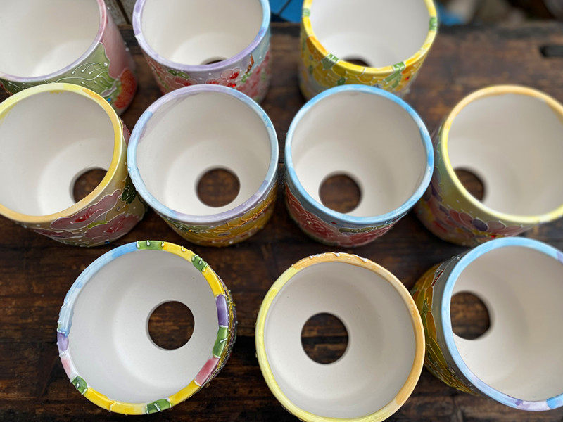 📚 手绘清新濑户烧直笔筒红陶白泥透气吸水多肉小老庄高花盆口7/8/9
