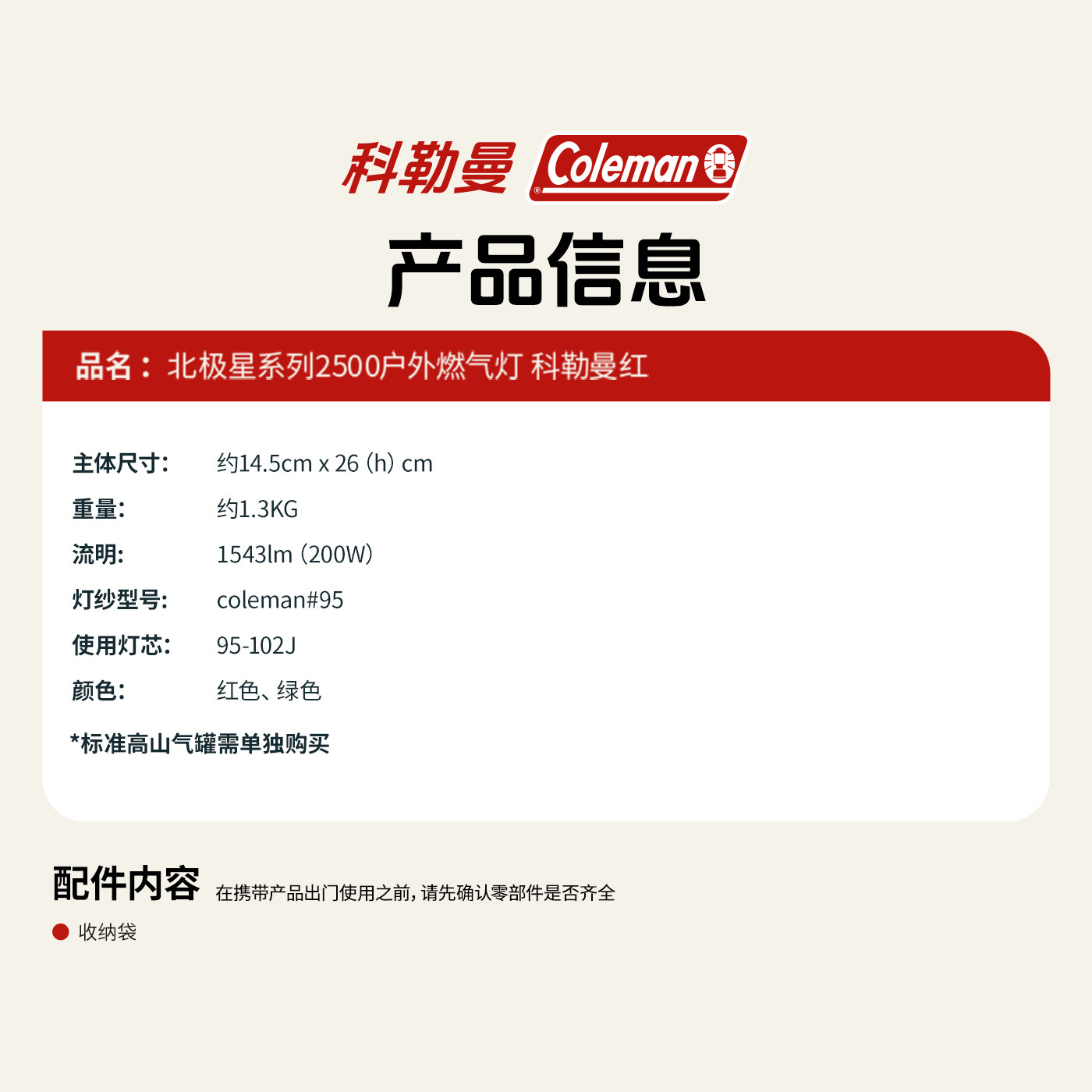 📚 Coleman科勒曼2500户外野营燃气灯便携式超长续航照明户外露营灯