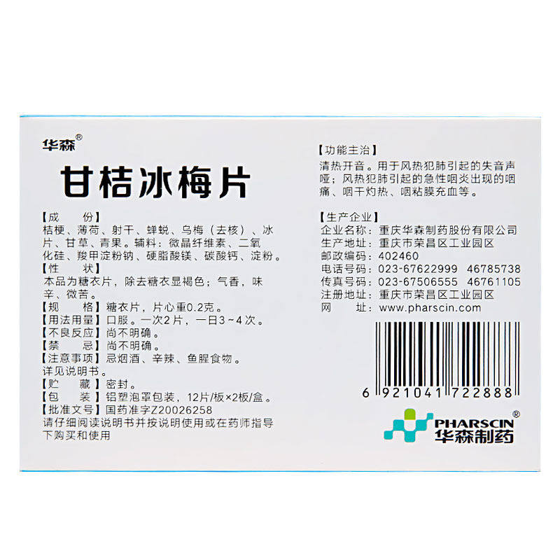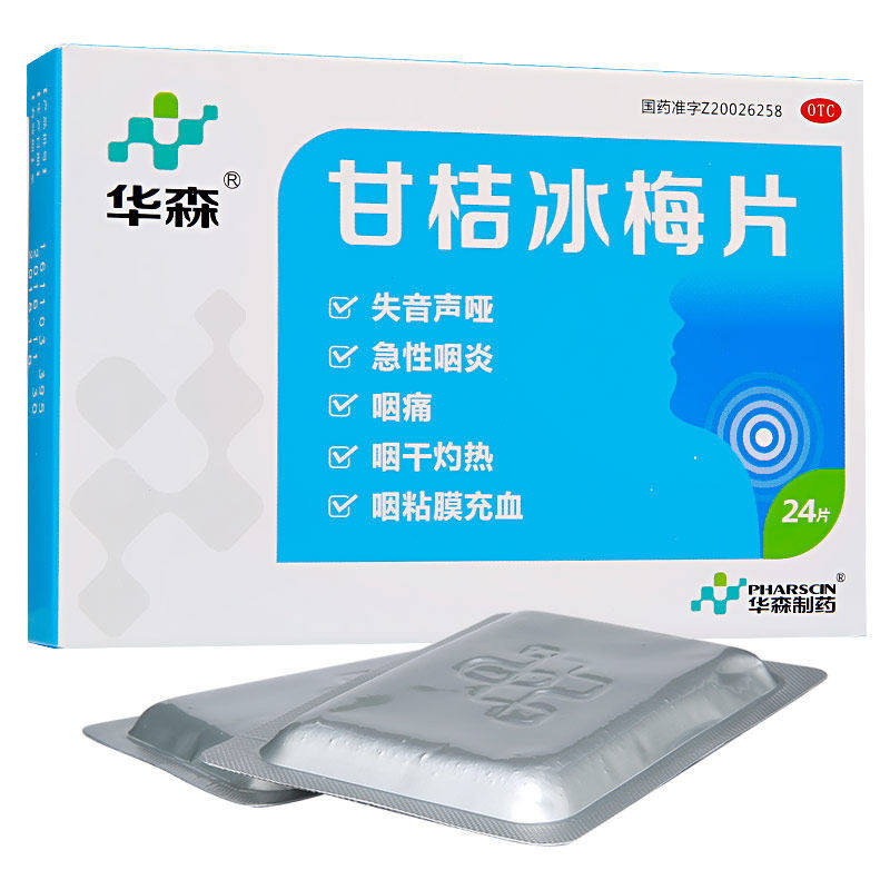 📚 华森 甘桔冰梅片 0.2g*24片/盒 失音声哑急性咽炎咽痛咽干灼热zy