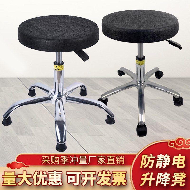 📚 无尘实验室用凳子圆凳防静电椅子升降旋转椅工厂车间流水线操作凳