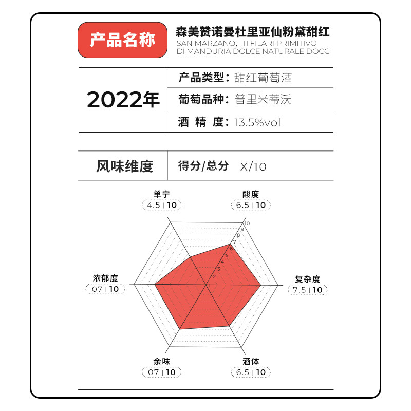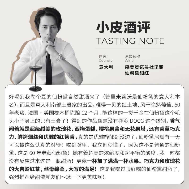 📚 仙粉黛甜红酒!意大利DOCG森美赞诺曼杜里亚老藤甜酒风干葡萄酒