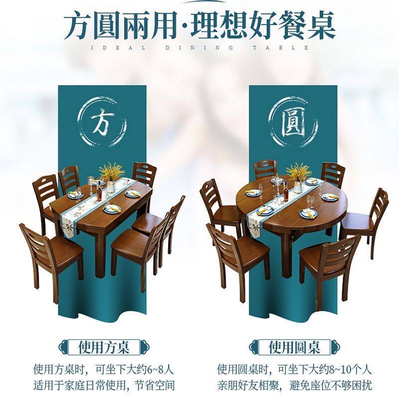 📚 2026餐桌饭桌吃饭桌子实木餐桌椅组合伸缩折叠圆桌方桌子折叠家用