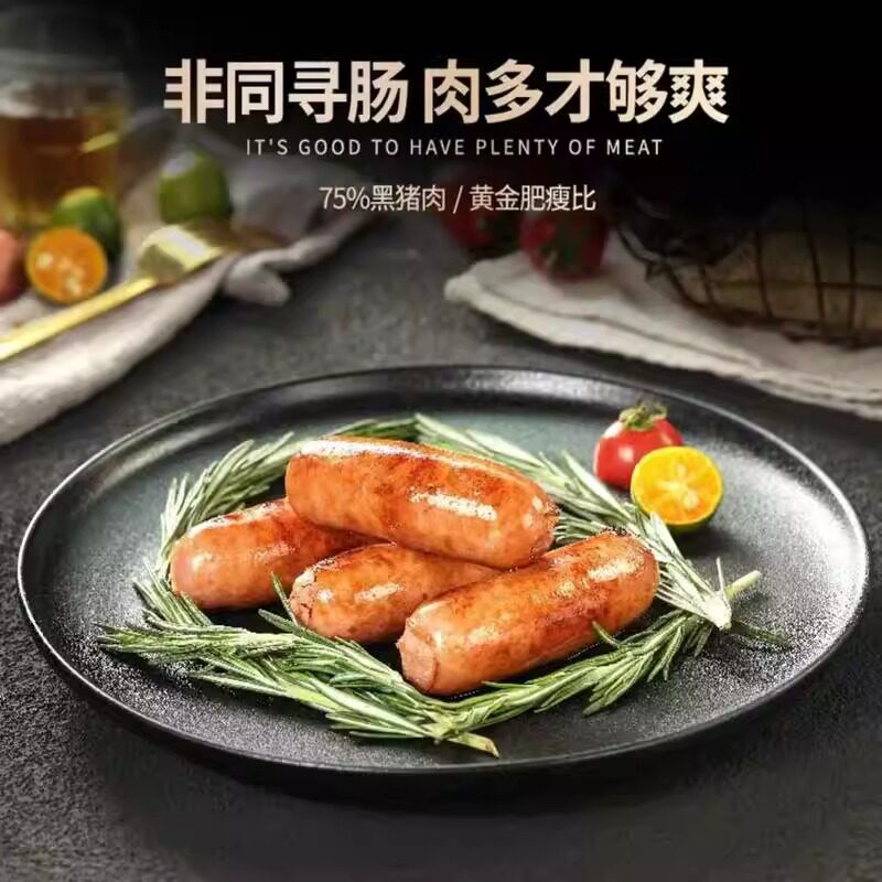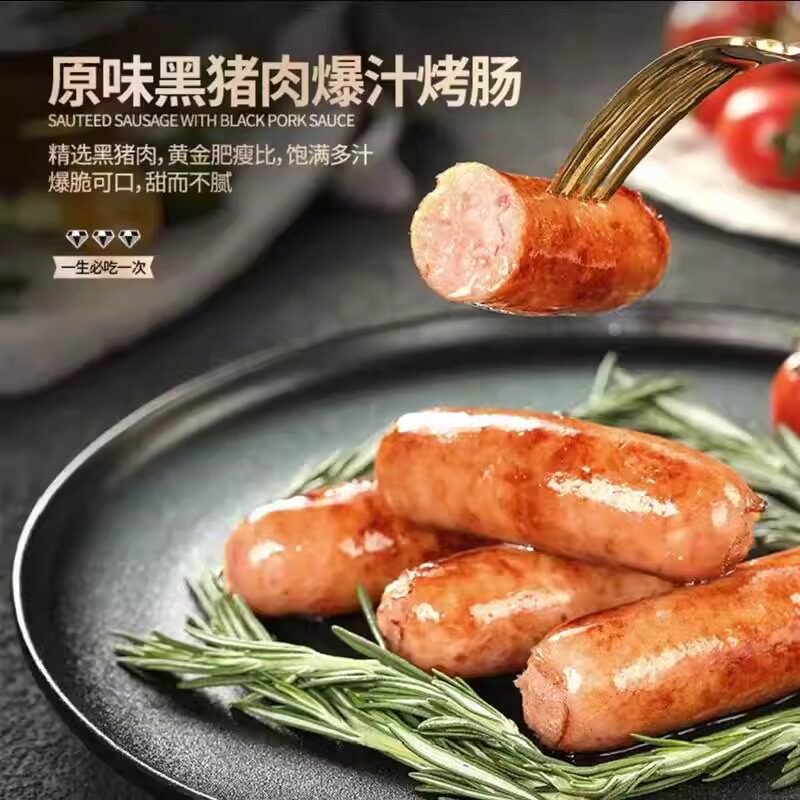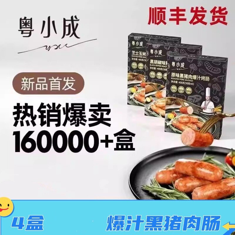 📚 粤小成火山石烤肠4盒粤小成黑猪肉爆汁脆皮烤肠原味黑胡椒味