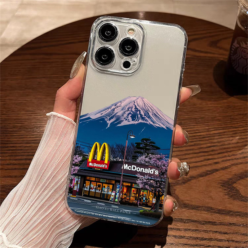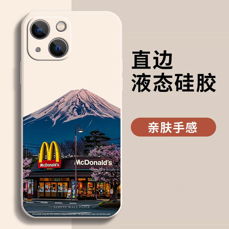 📚 ins风富士山下适用iphone17华为pura70苹果16promax手机壳opporeno7se镜面vivox90一加12风景mate60pro小米14