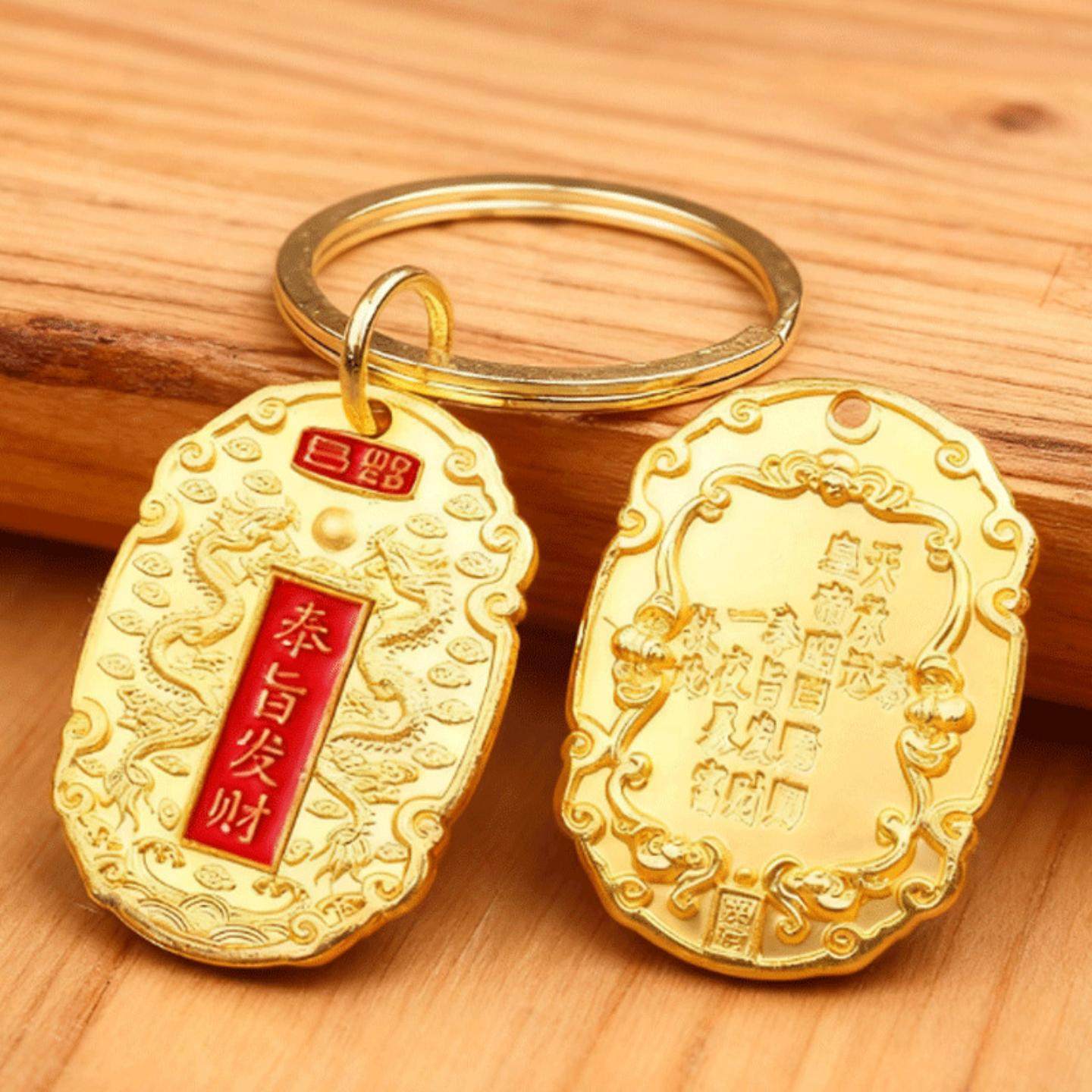 📚 纯黄铜蛇年创意招财钥匙扣龙牌挂件男女汽车钥匙链吊坠平安符挂件