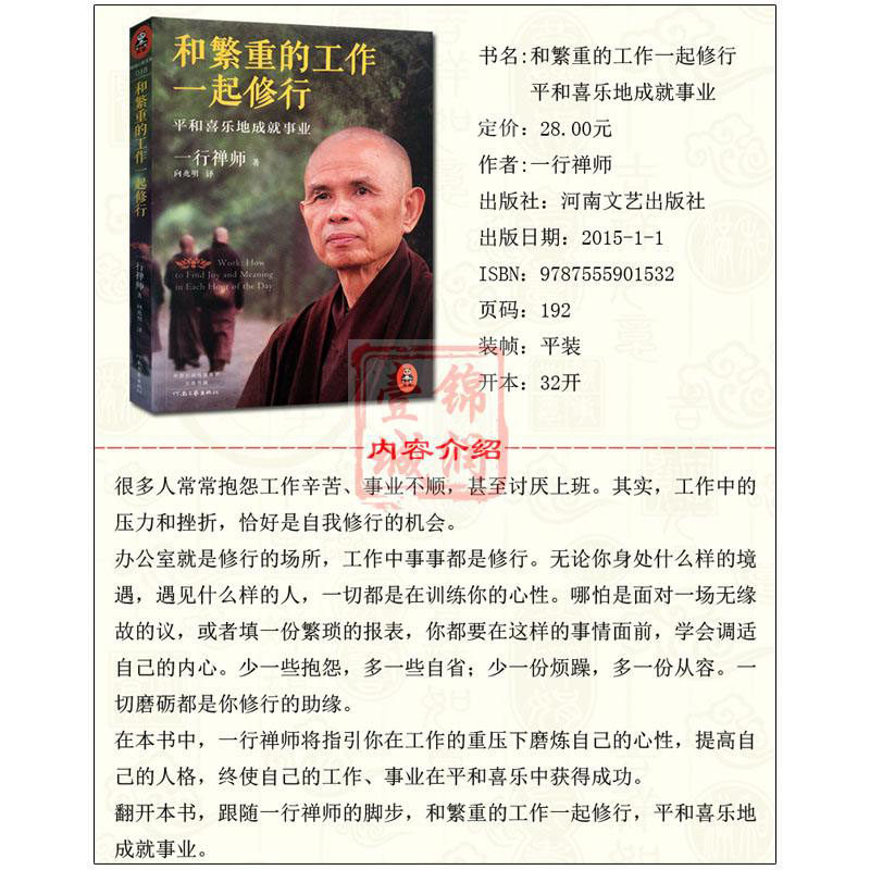 📚 和繁重的工作一起修行 一行禅师的书一行禅师选集一行禅师著作禅宗经典禅宗书籍畅销书禅宗语录禅密要法禅宗公案禅宗心法