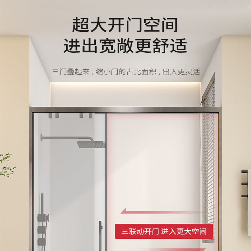 📚 极窄三联动淋浴房卫生间干湿分离浴室玻璃推拉移门浴屏送货安装