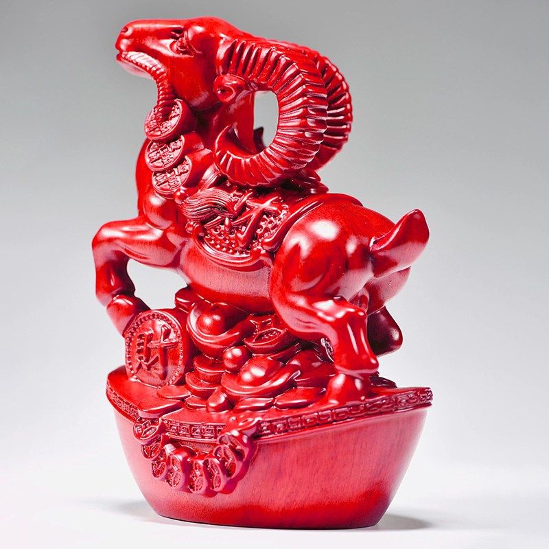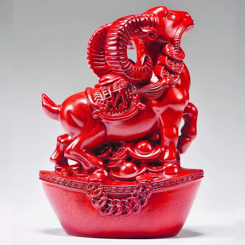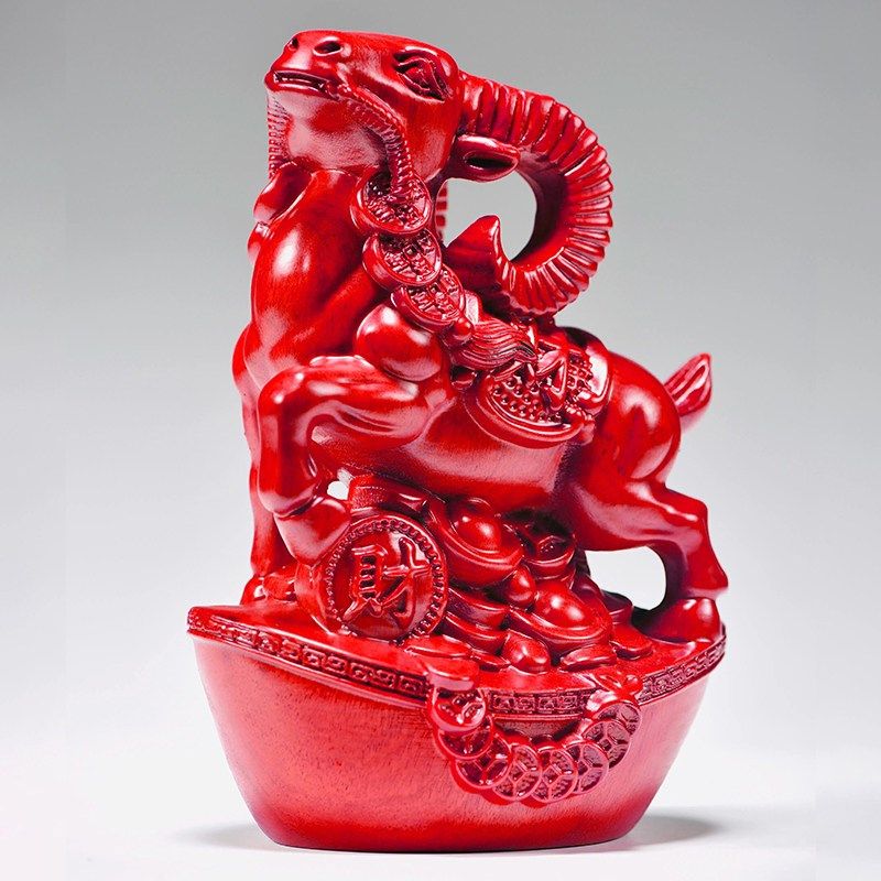 📚 红色羊摆件实木雕刻生肖羊房屋缺角补角化解五行缺火属性工艺礼品