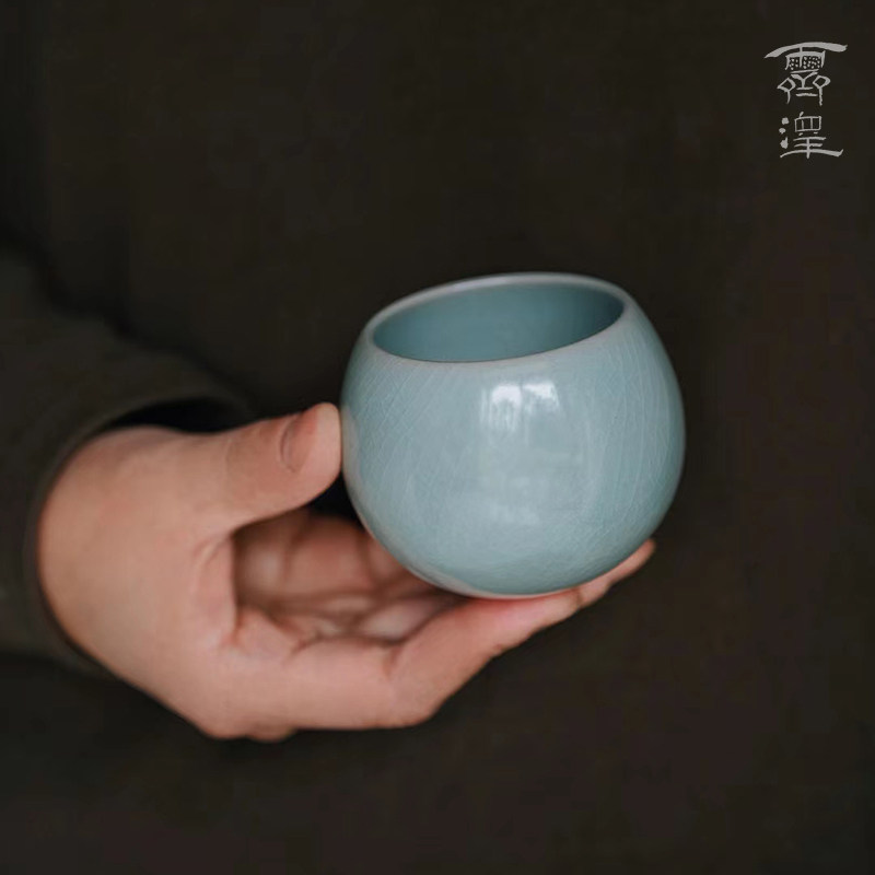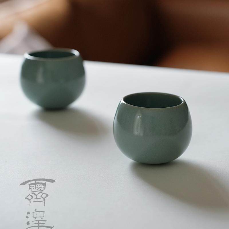 📚 霁泽汝瓷天青釉相见欢平安对杯不倒杯清凉寺矿石釉中秋节礼品
