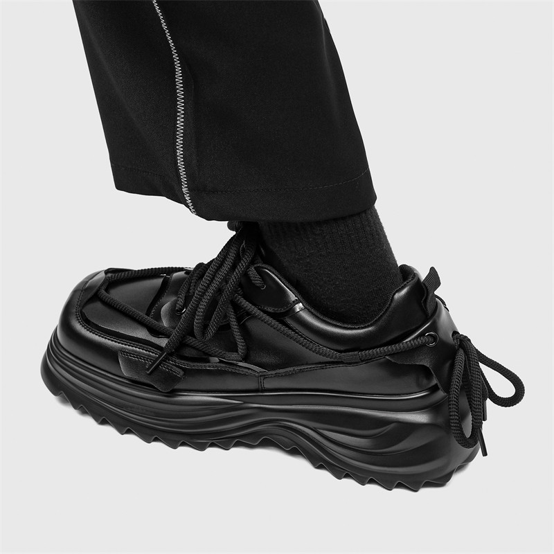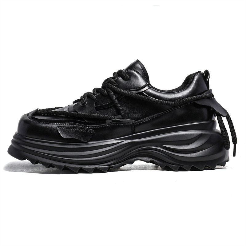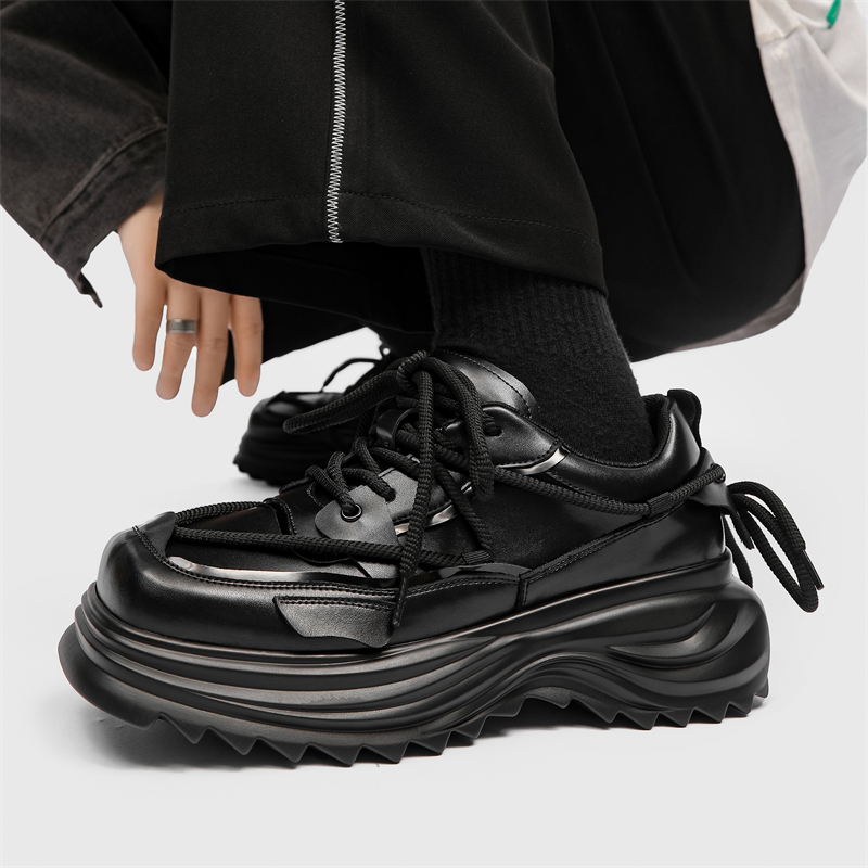 📚 小众方头男士厚底增高鞋子老爹鞋情侣款小众绑带休闲德比黑色皮鞋