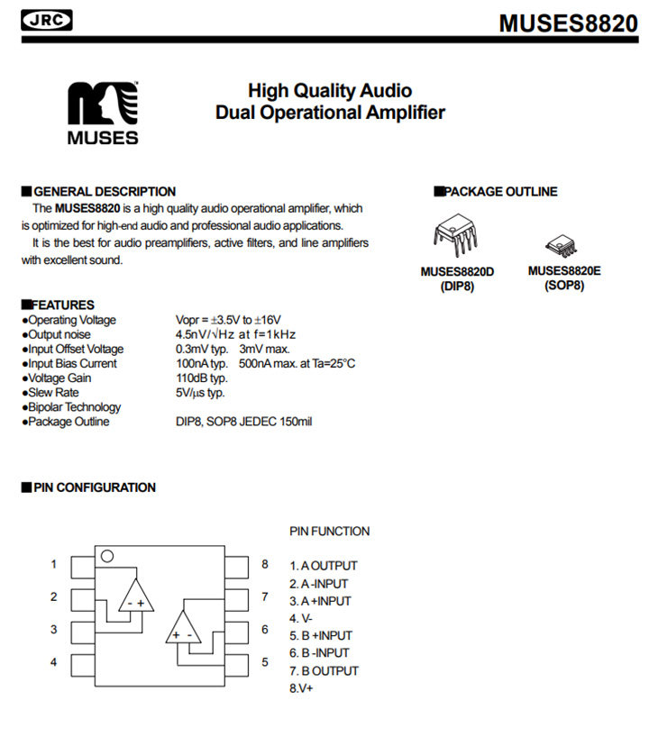 📚 日本JRC MUSES8820 8920 直插/贴片 高音质双运放 原盒装进口正品